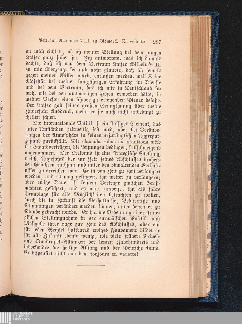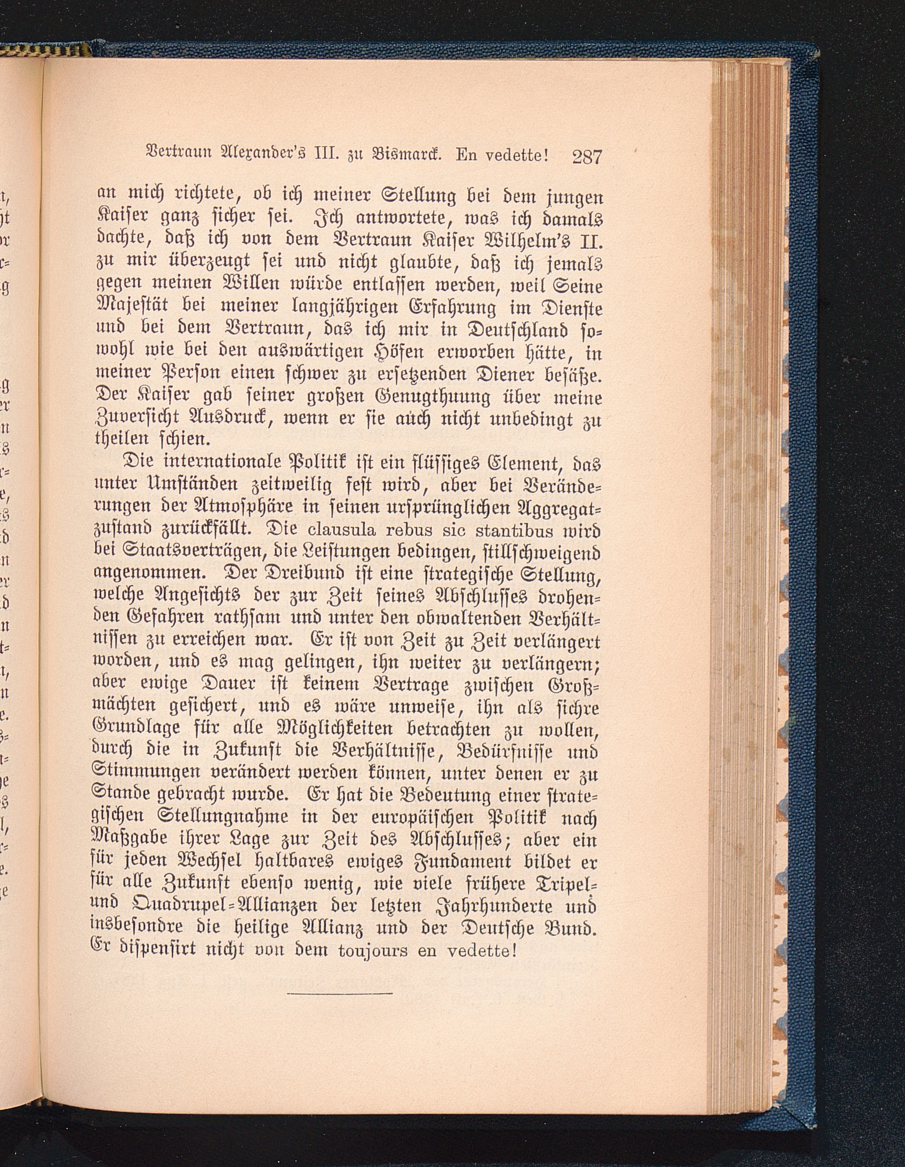 VIII. Vertrauen Alexander´s III. zu Bismarck´s friedlicher Politik.