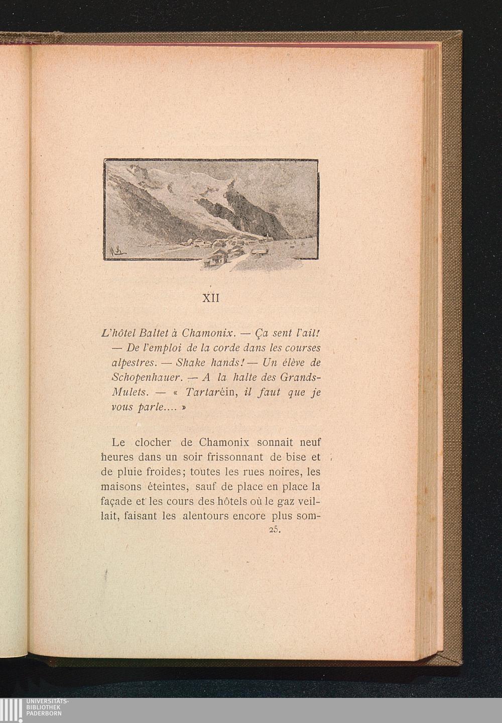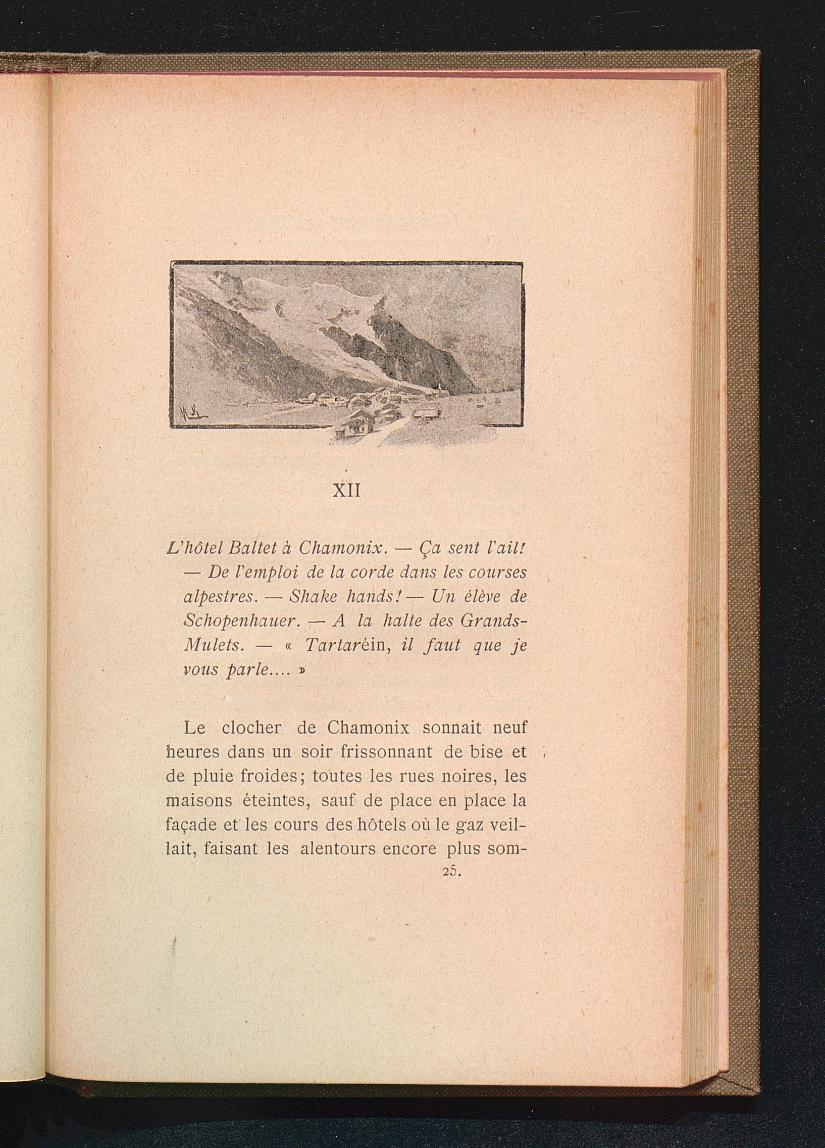 XII L'hôtel Baltet à Chamonix. - Ça sent l'ail! - De l'emploi de la corde dans les courses alpestres. - Shake hands! - Un élève de Schopenhauer. - A la halte des Grands - Mulets. - "Tartarein, il faut que je vous parle"