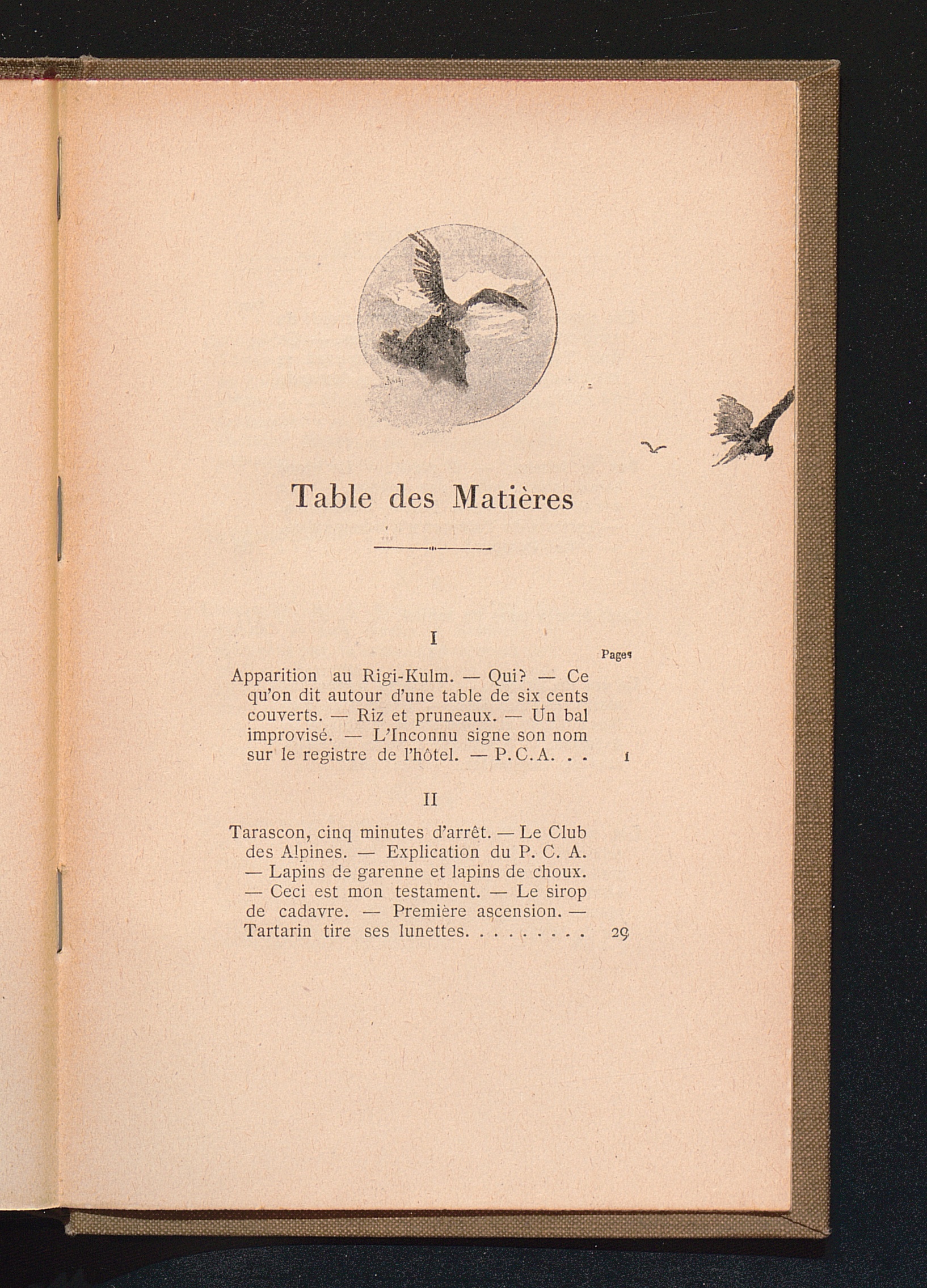 II Tarascon, cinq minutes d'arrêt. - Le Club des Alpines. - Explication du P. C. A. - Lapins de garenne et lapins de choux. - Ceci est mon testament. - Le sirop de cadavre. - Premiere ascension. - Tartarin tire ses lunettes.