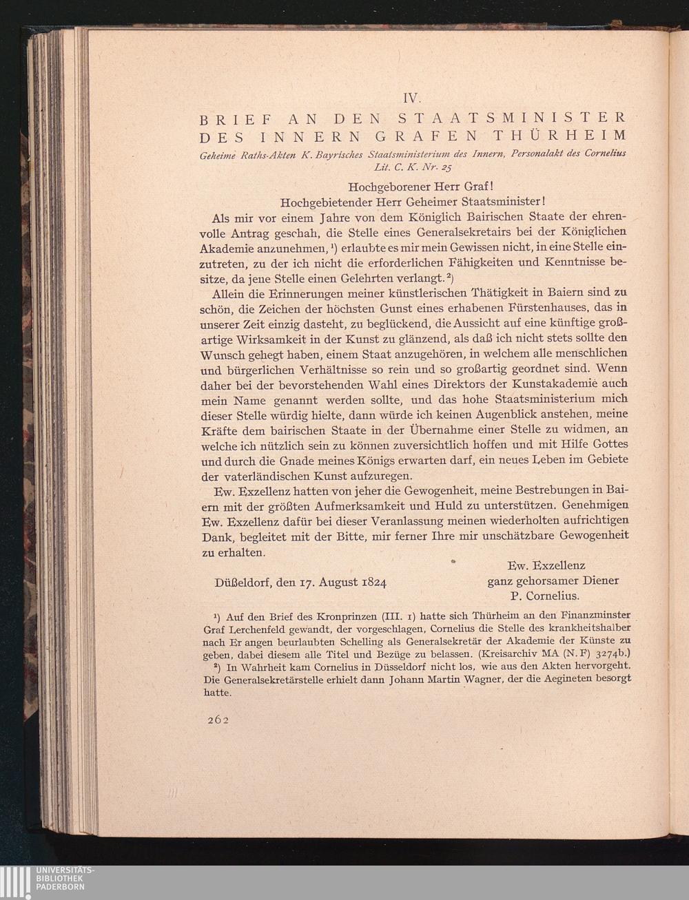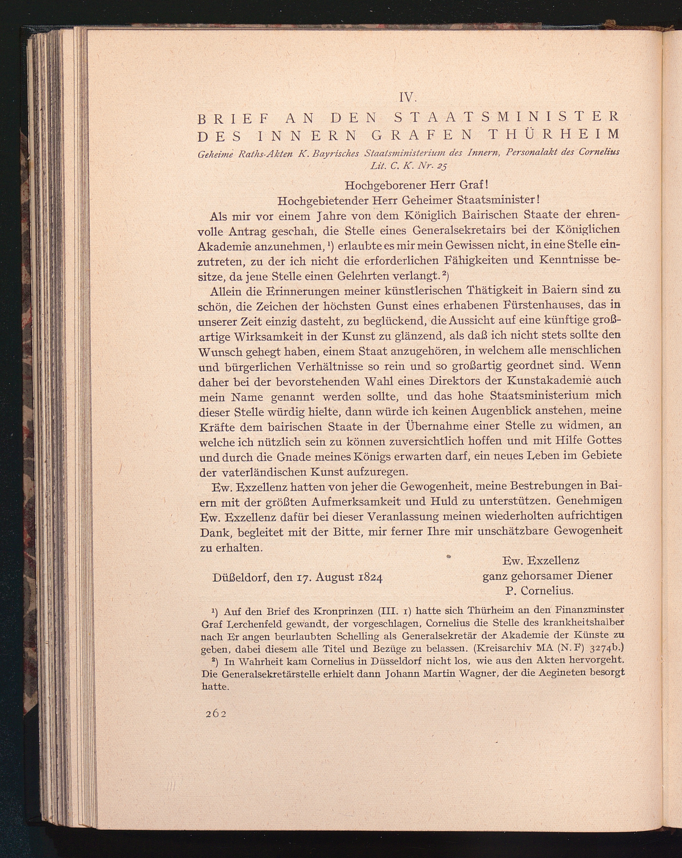 IV. Brief des Cornelius an den Staatsminister des Innern, Grafen Thürheim vom 17.[...]