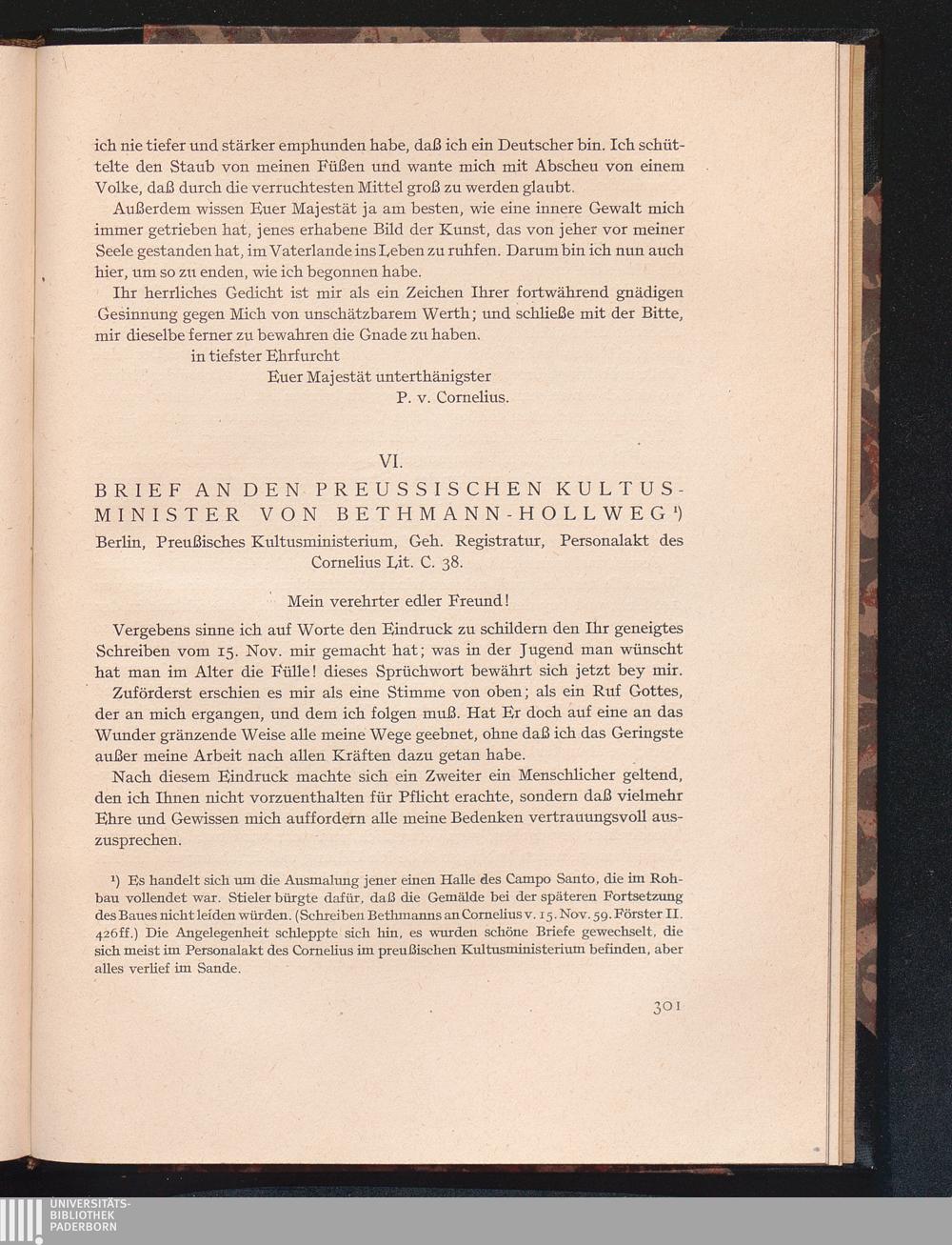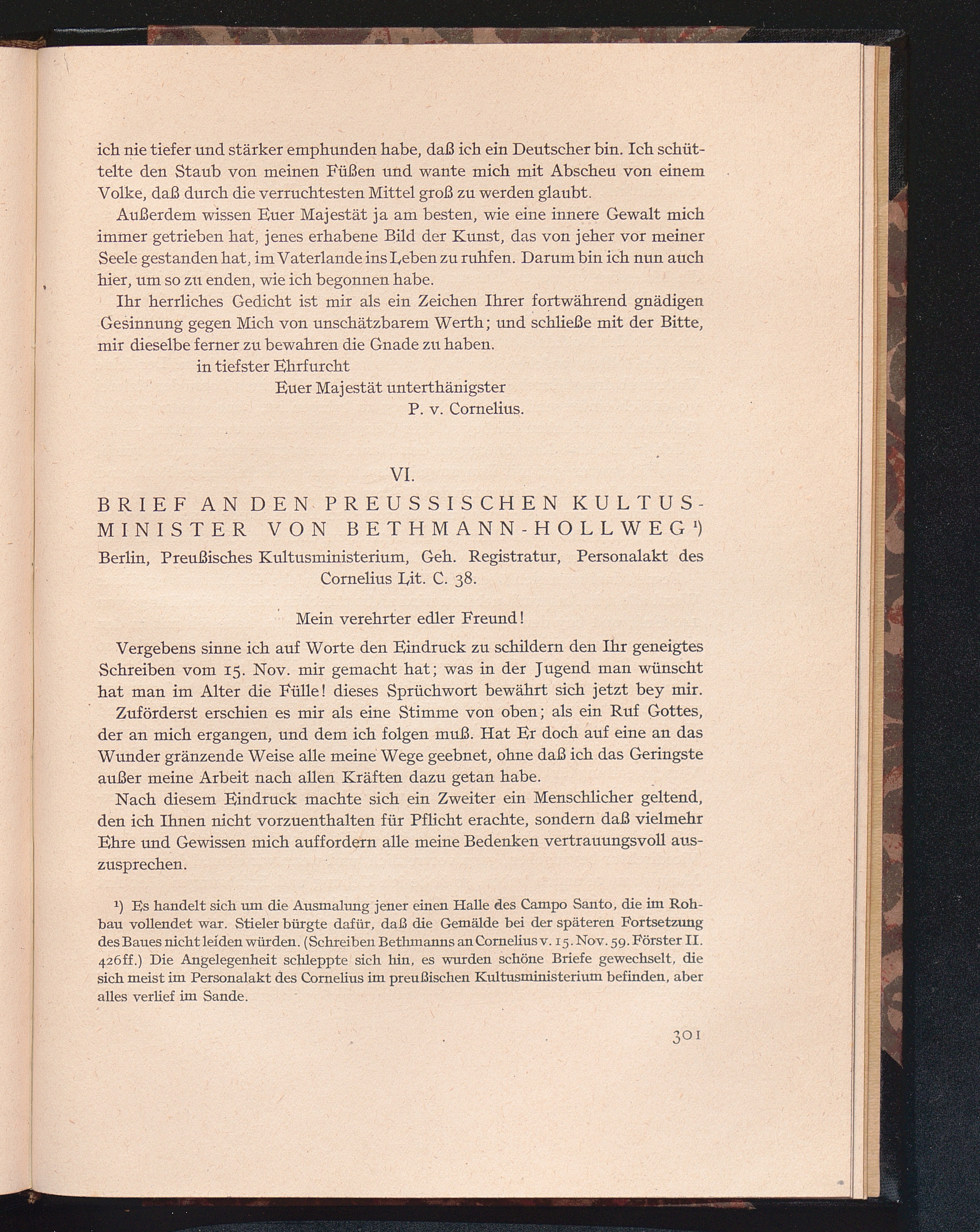 VI. Brief des Cornelius an den Preußischen Kultusminister v. Bethmann vom 4. Dezember[...]