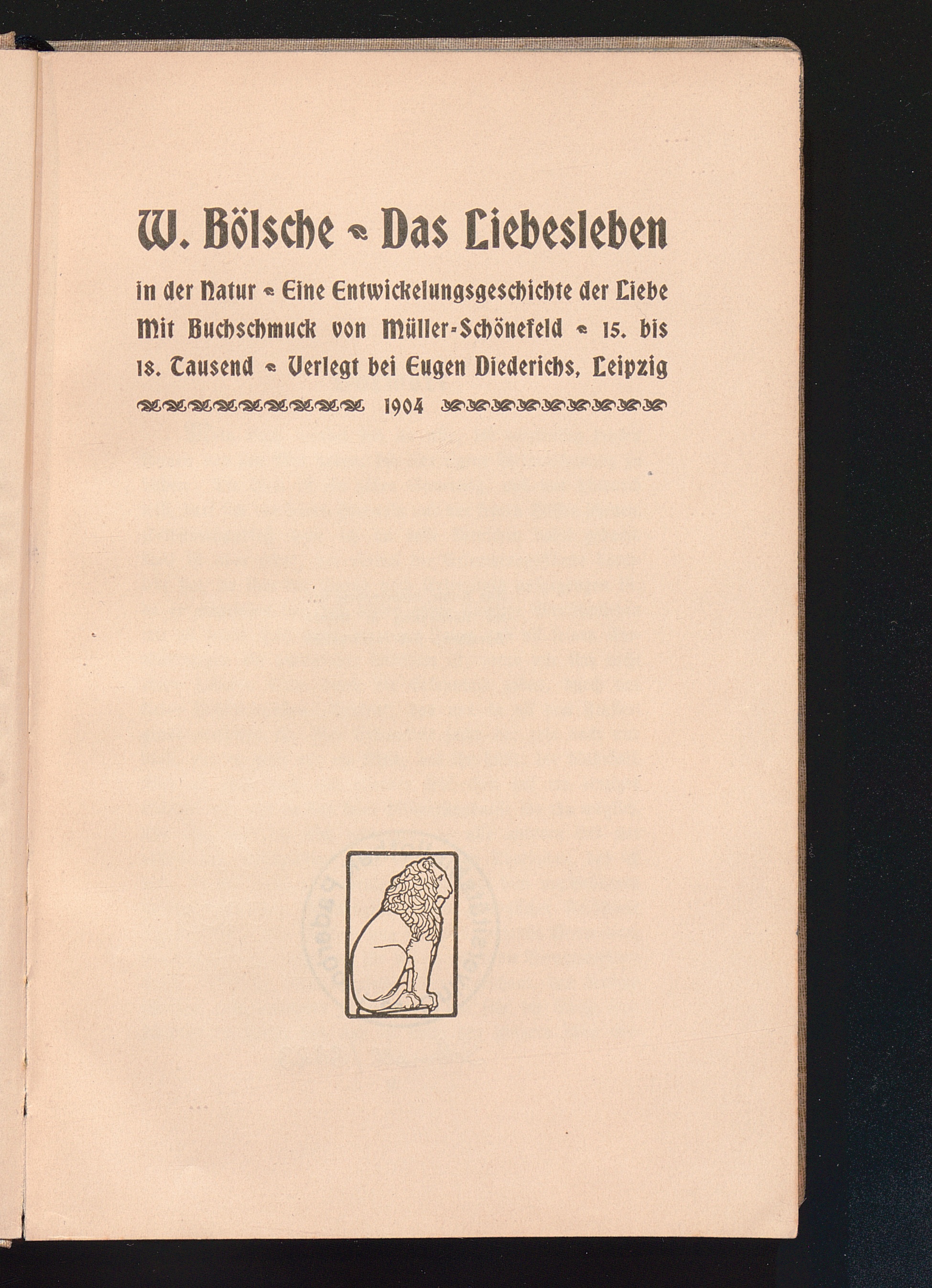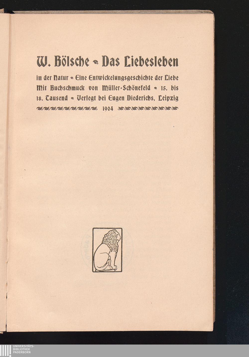 Urzeugung. - Ist die Liebe „entstanden"? - Der Geburtsakt der Liebe. - Die Sage von der Geburt der Aphrodite und die Affenabstammung. - Das Wunder der Schöpfung. - Das Anorganische und das Lebendige. - Der Kohlenstoff. - Das Leben als Grundeigenschaft der Materie. - Der Mensch als Ur=Bazillus einer neuen Zeit. - Geist und Stoff. - Der Begriff des Individuums. - Der Wassertropfen in der Höhle. - Erotische und mechanische Anziehung. - Die „Wahlverwandtschaften". - Der Atome Hassen und Liebe. - Die Liebe ...