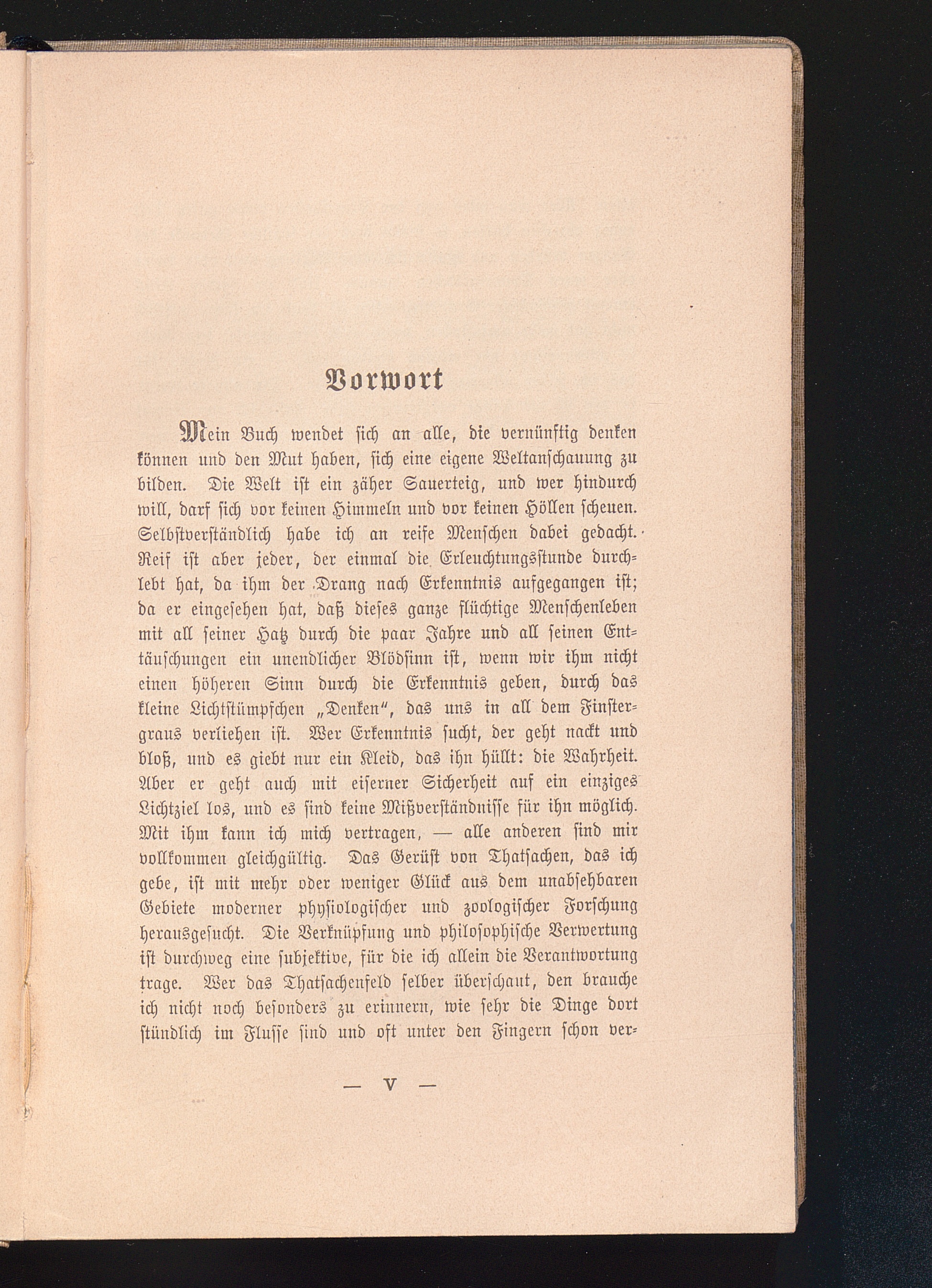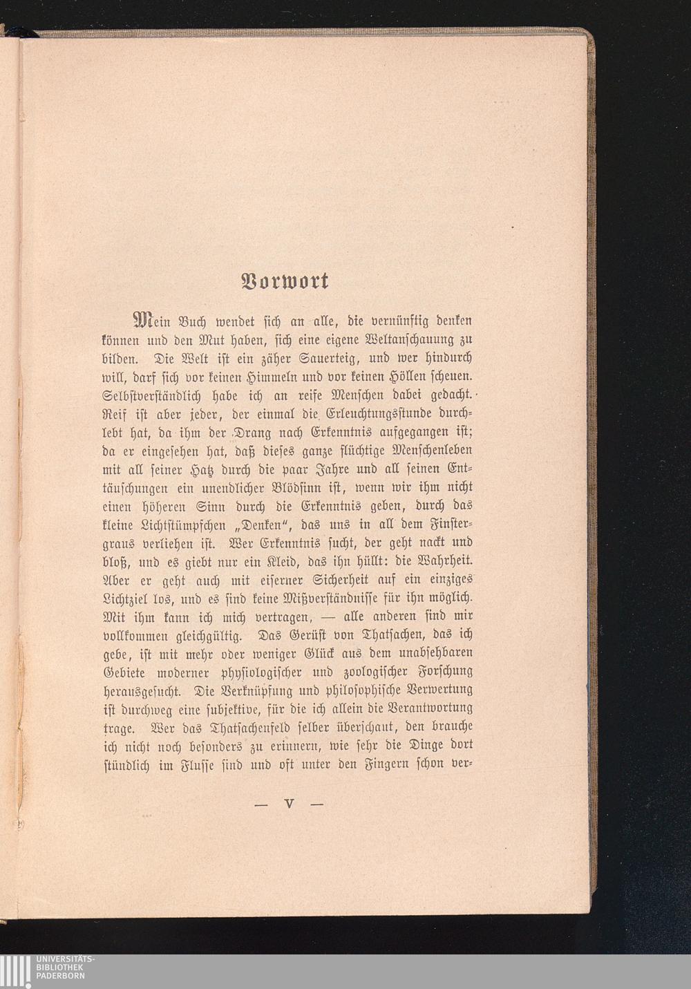 Urzeugung. - Ist die Liebe „entstanden"? - Der Geburtsakt der Liebe. - Die Sage von der Geburt der Aphrodite und die Affenabstammung. - Das Wunder der Schöpfung. - Das Anorganische und das Lebendige. - Der Kohlenstoff. - Das Leben als Grundeigenschaft der Materie. - Der Mensch als Ur=Bazillus einer neuen Zeit. - Geist und Stoff. - Der Begriff des Individuums. - Der Wassertropfen in der Höhle. - Erotische und mechanische Anziehung. - Die „Wahlverwandtschaften". - Der Atome Hassen und Liebe. - Die Liebe ...