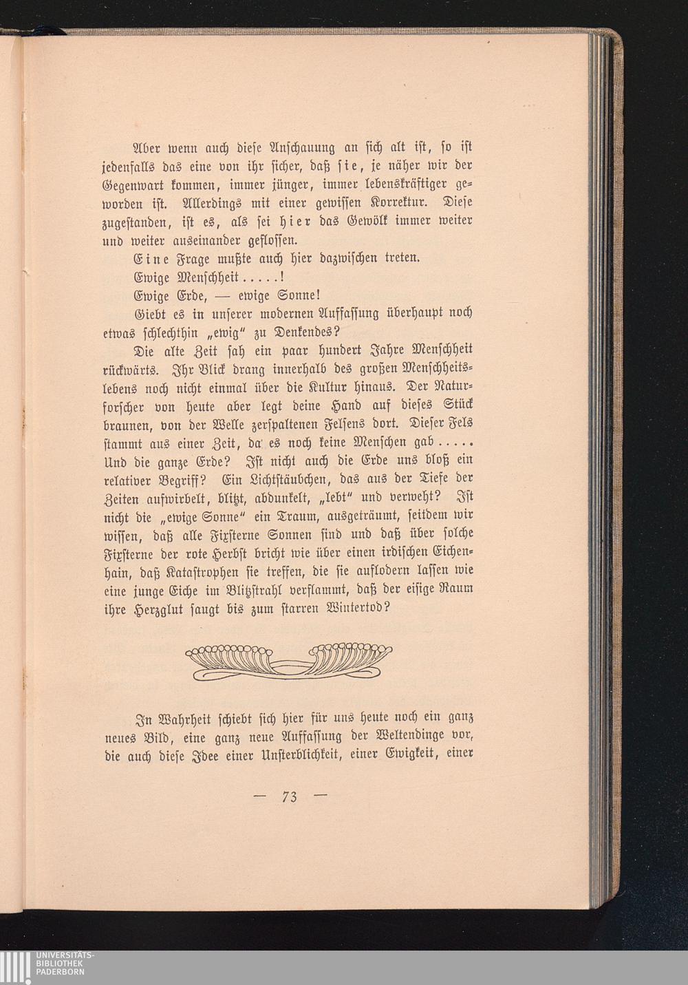 Ein Mysterium. - Hinab in die Tiefe! - Die geheimnisvolle Kugel. - In der Eizelle. - Die Begegnung der Samenzelle und der Eizelle. - Seeigel und Mensch. - Das Ergebnis der Verschmelzung. - Was man unter „Zelle" versteht. - Philosophie der Zeugung. - Die Enträtselung des Zeugungsvorgangs in der modernen Forschung. - Grundthatsachen des menschlichen Lebens. - Der Tod. - Die Zeugung als Form der Unsterblichkeit. - Die beiden Prinzipien der Unsterblichkeit. - Individuelle Unsterblichkeit. - Unsterblichkeit ...