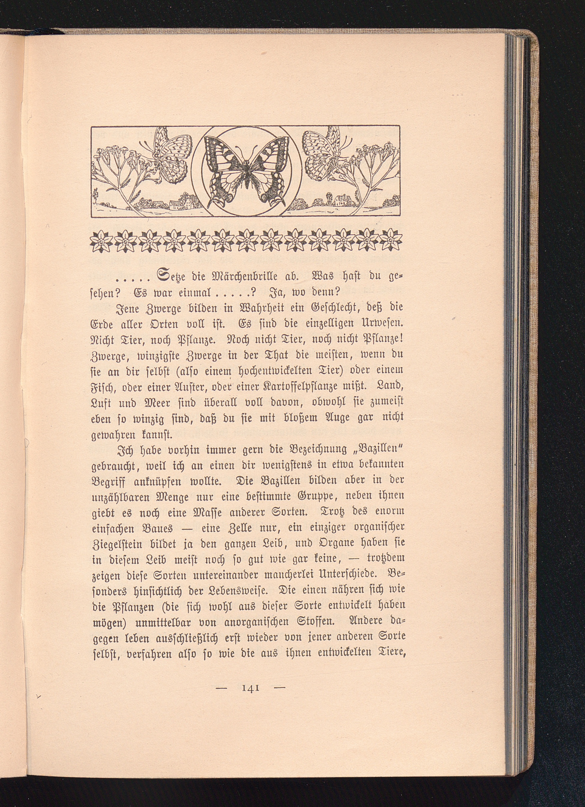 Vom „dritten Reich" und seiner Liebe. - Der Mensch und der Bazillus als Herren der Erde. - Die Geschlechtslosigkeit der Ur=Zellen. - Wachstum und Fortpflanzung. - Die Verschmelzung zweier Ur=Zellen. - Die Geburtsstunde der Geschlechtsliebe. - Die Liebe als eine verfeinerte Form des Fressens. - Warum man seine Geschwister nicht heiratet. - Die Liebe der Blumen. - Was die Fliege im Aronsstab erleben musste. - Die Liebe per Mausfalle. - Von der sinnreichen Vallisneria. - Die Lösung des Märchens von den ...