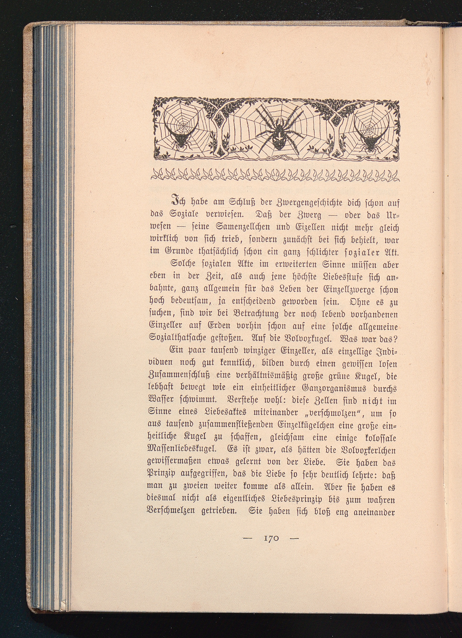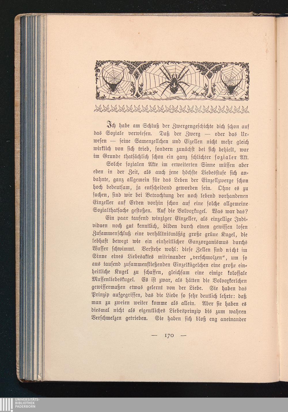 Das Wörtchen „Sozial" in der Geschichte der Liebe. - Der Mensch und der Volvox. - Arbeitsteilung. - Die Arbeitsteilung im Fressen. - Die Entstehung der Gasträa. - Wie deine Seele zu stande kommt. - Männliche und weibliche Zellverbände. - Die Arbeitsteilung in der Liebe. - Das große Rätsel der Vererbung. - Der Fall Schenk. - Die Hypothese der Pangenesis. - Ob Weismann Recht hat? - Nochmals vom Volvox. - Das biogenetische Grundgesetz. - Die geschichtliche Lösung des menschlichen Zeugungsvorgangs. - ...
