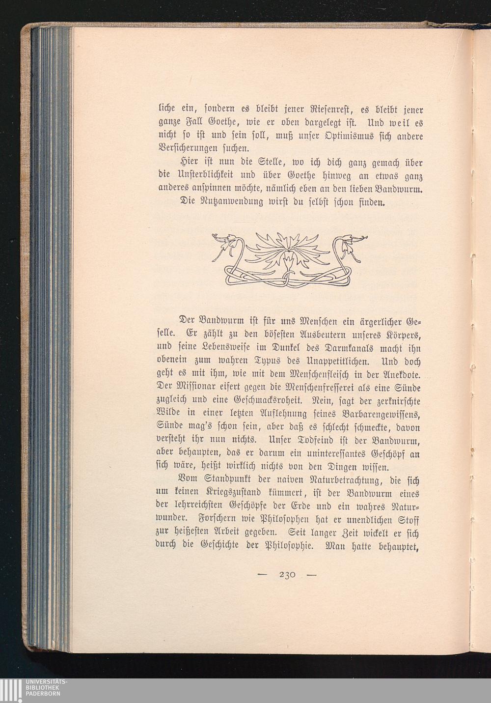 Der Bandwurm. - Philosophisches zum Bandwurm. - Der zoologische Begriff der „Ammenzeugung".[...]