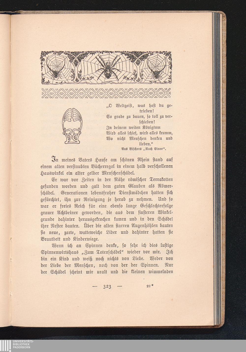 Vom Wirtshaus „Zum Totenschädel". - Der Konflikt des „Fressens und der Liebe. - „Spinn,[...]
