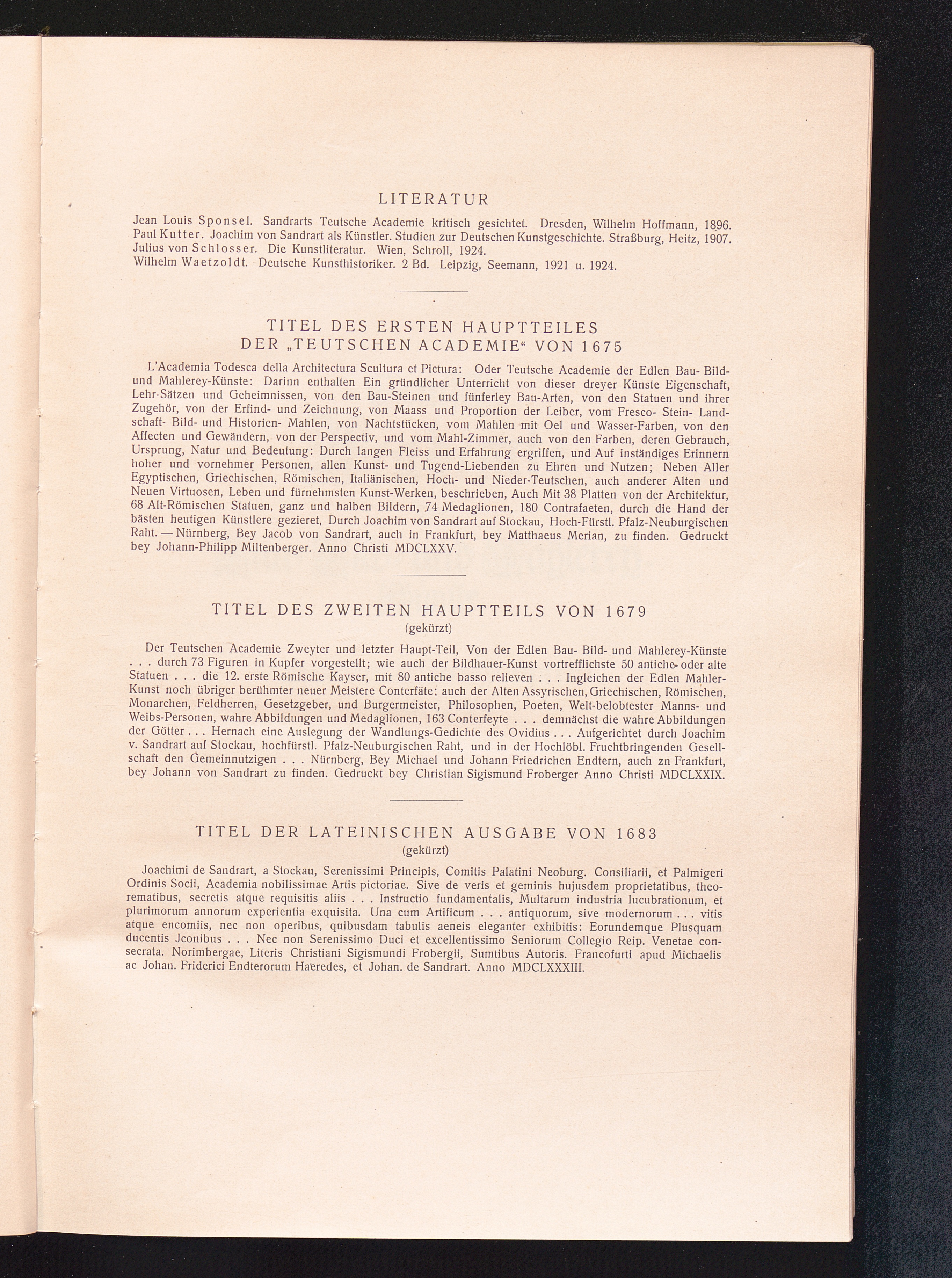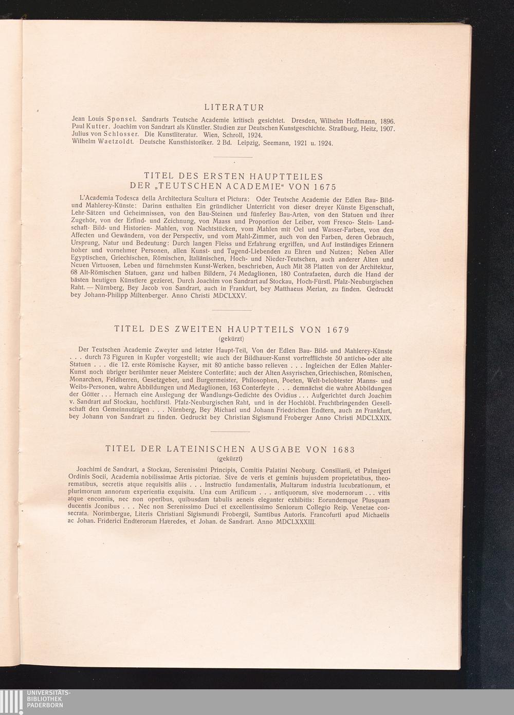 Joachim von Sandrarts Academie [Akademie] der Bau-, Bild- und Mahlerey-Künste [Malerei-Künste] von 1675 : Leben der berühmten Maler, Bildhauer und Baumeister / hrsg. u. kommentiert von A. R. Peltzer. Mit 140 Künstlerporträts und anderen Abbildungen