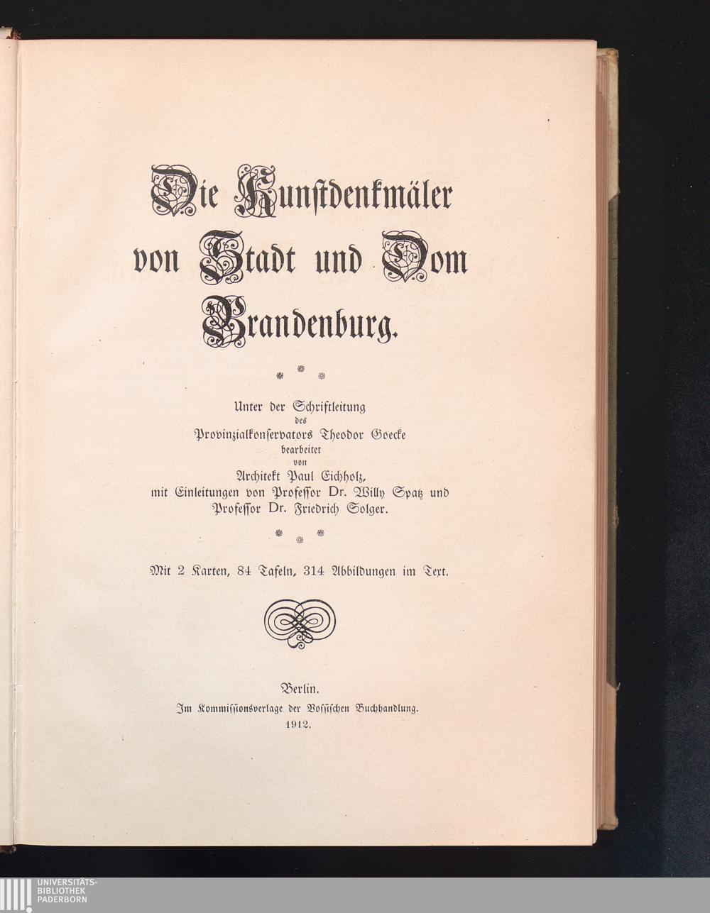 Die Kunstdenkmäler von Stadt und Dom Brandenburg / bearb. von Paul Eichholz