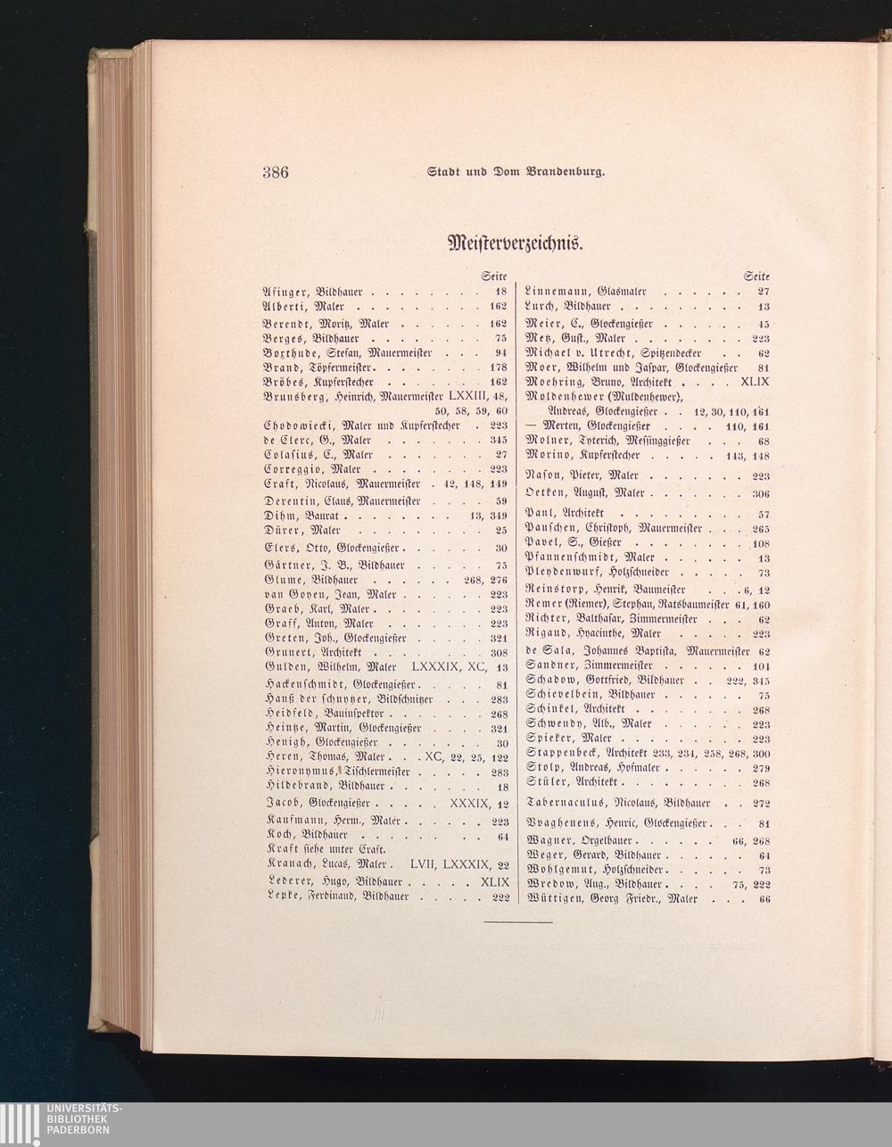 Meisterverzeichnis.