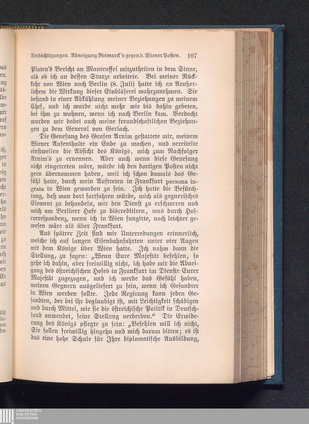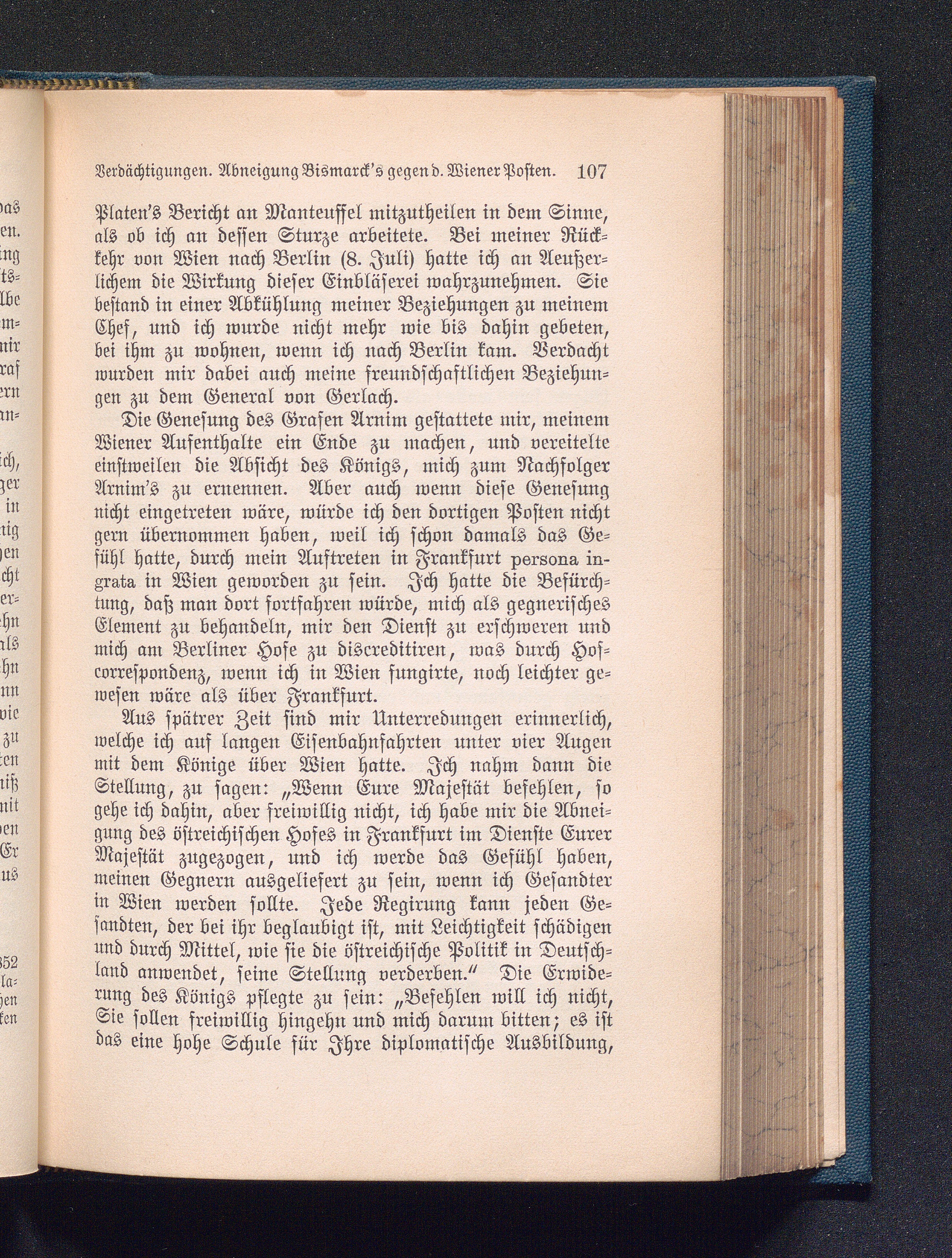 Abneigung Bismarck's gegen den Wiener Posten und den Ministerposten