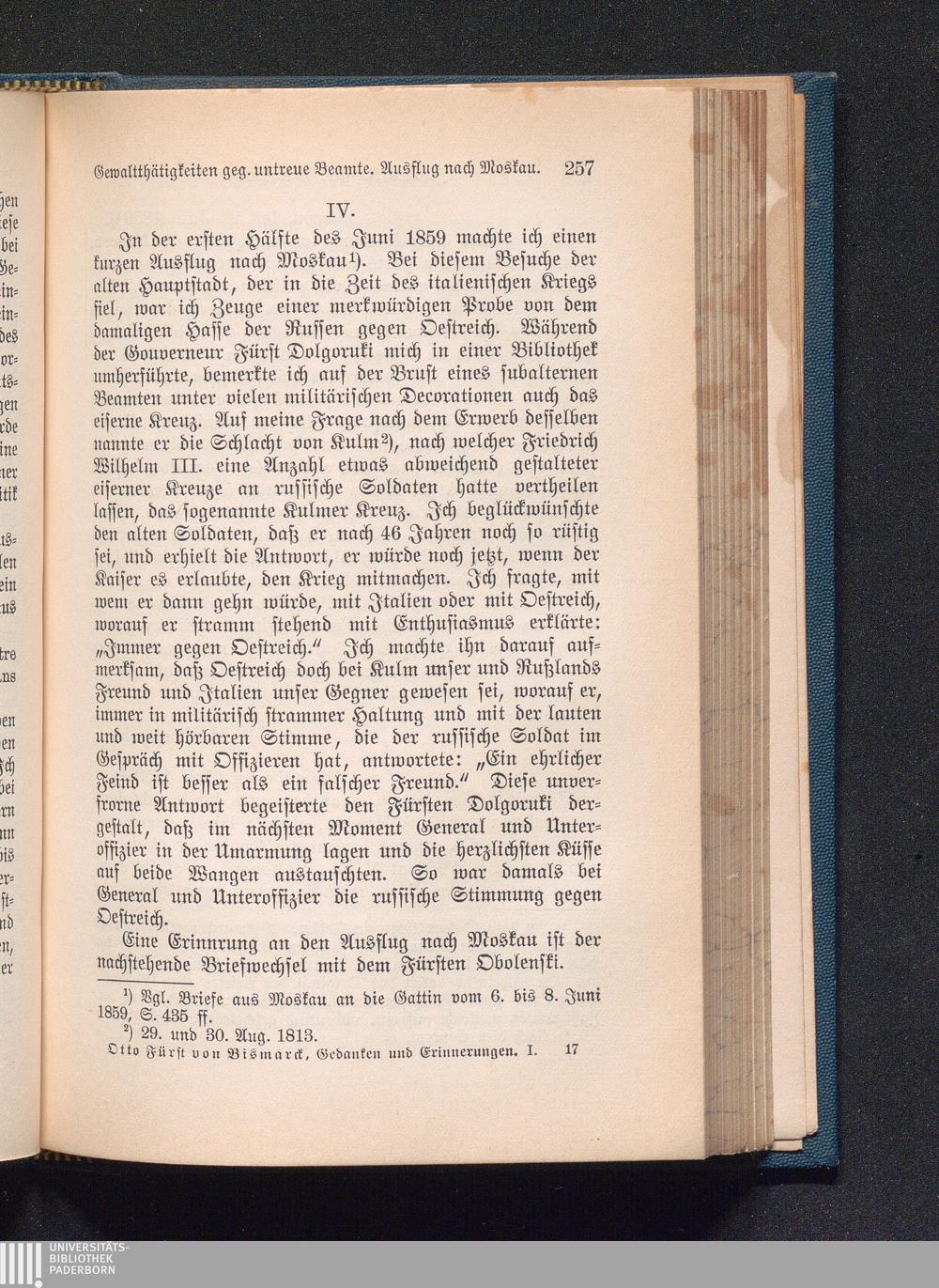 IV. Erinnerungen an den Besuch in Moskau