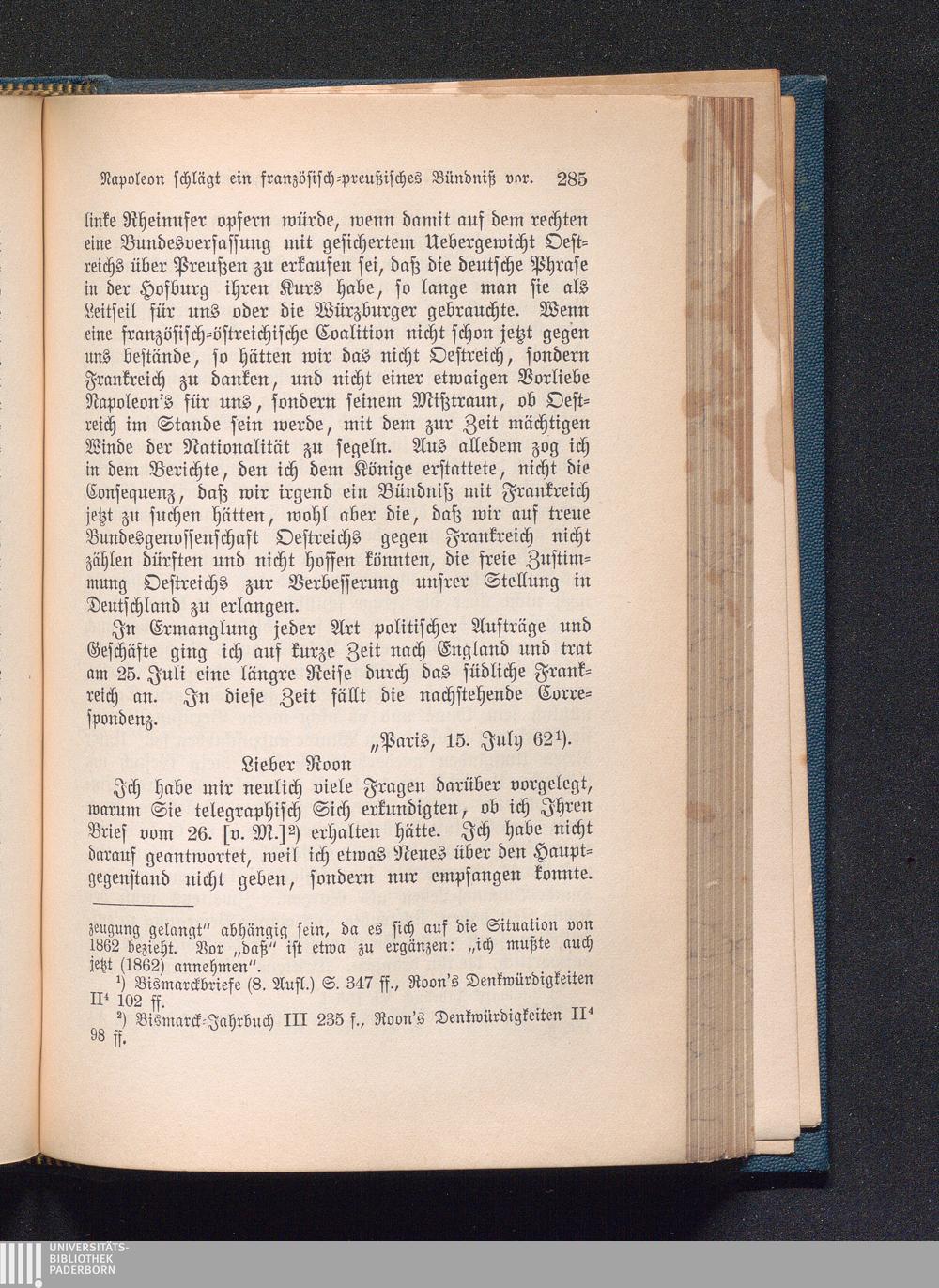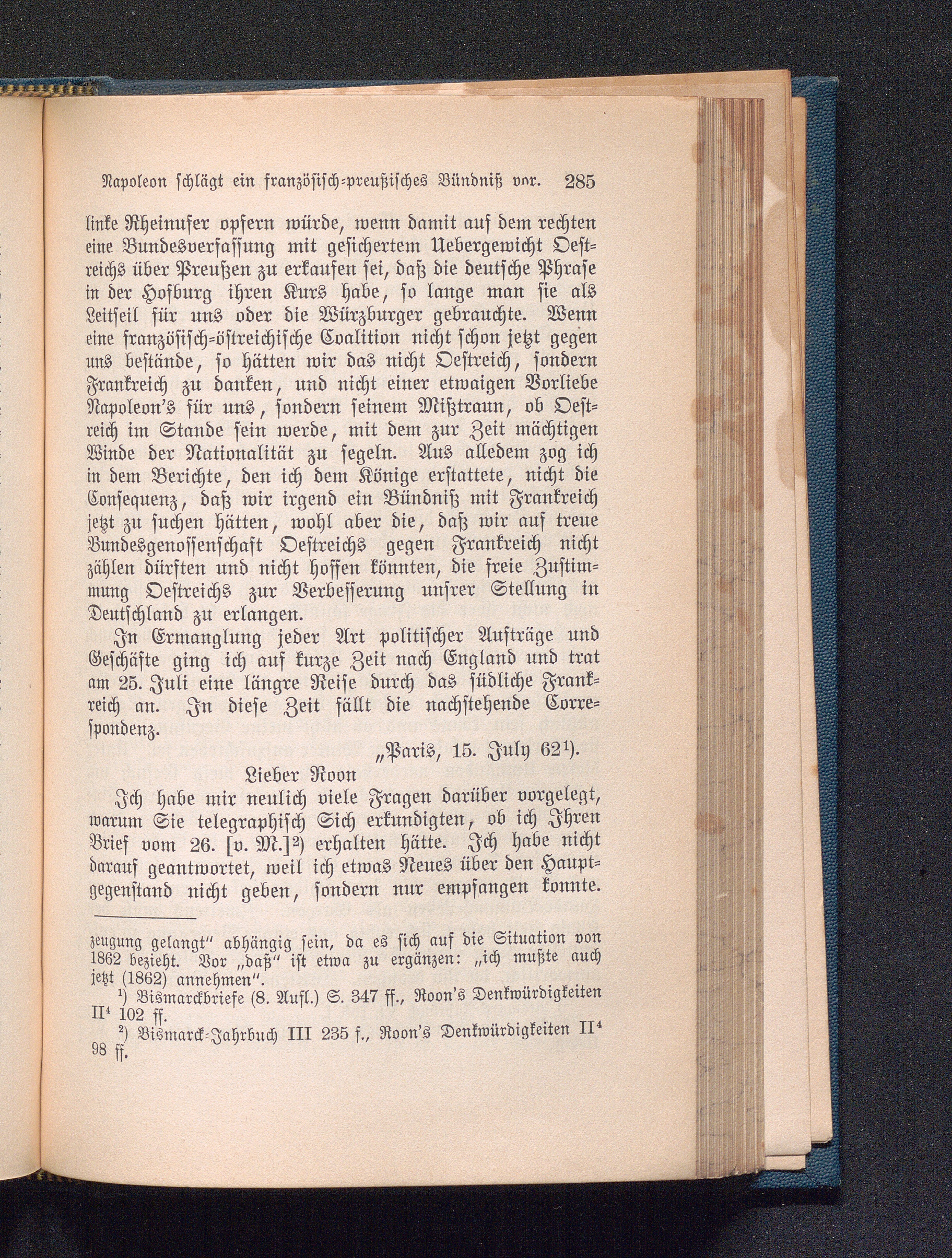 Reise in Südfrankreich, Briefwechsel mit Roon