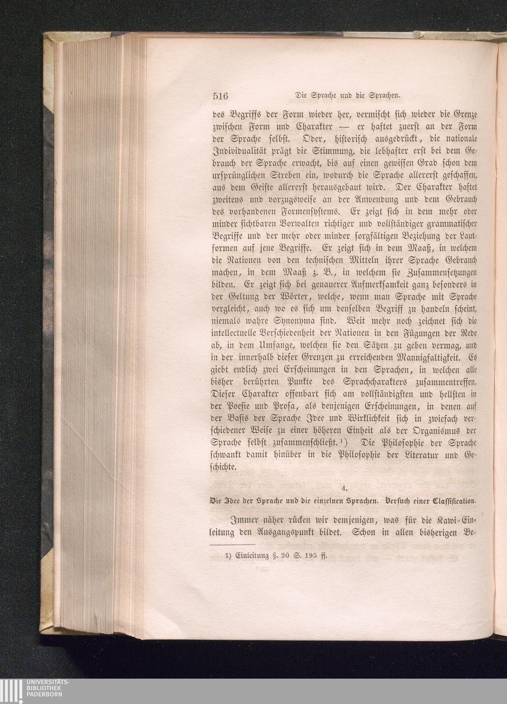 4. Die Idee der Sprache und die einzelnen Sprachen. Versuch einer Classification[...]