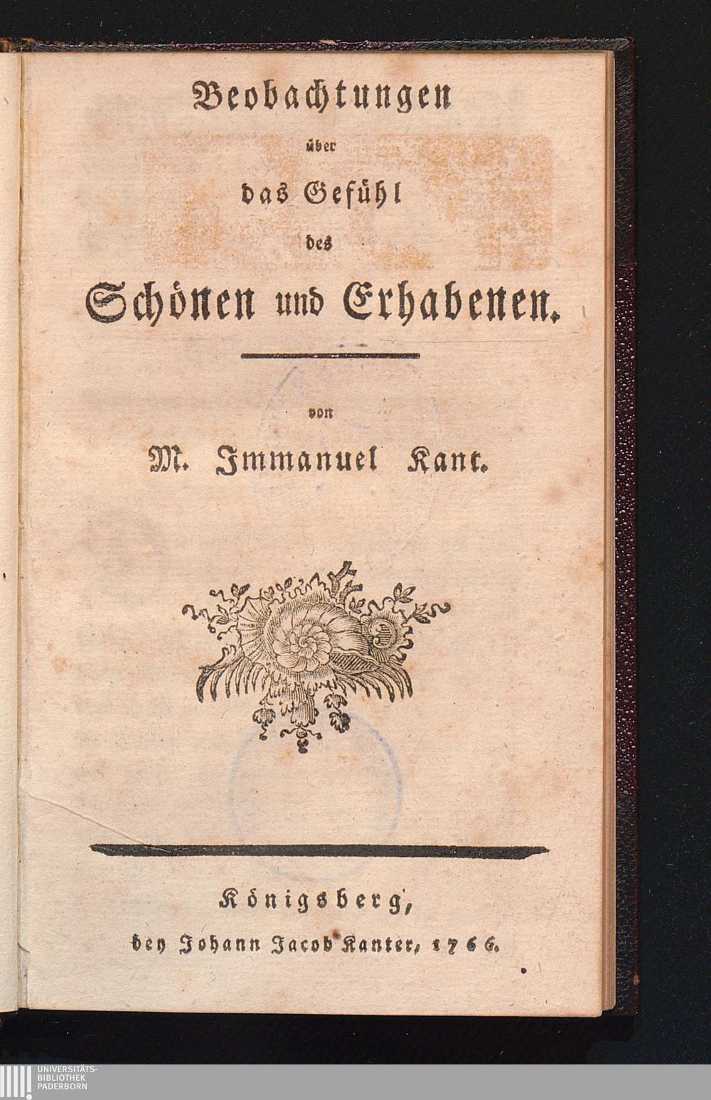 Beobachtungen über das Gefühl des Schönen und Erhabenen / von M. Immanuel Kant
