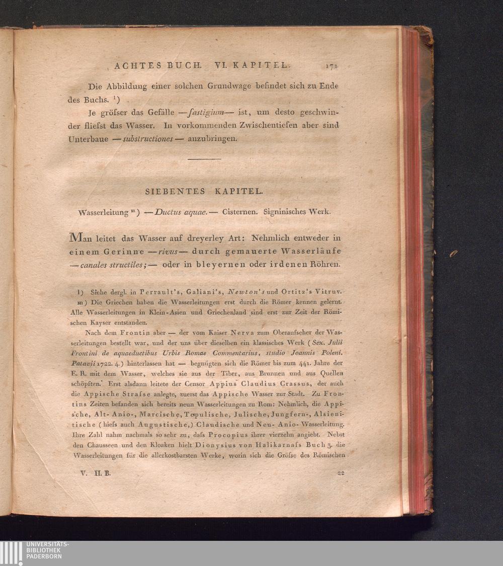 VII. Kap. Wasserleitung. Cisternen. Signinisches Werk.