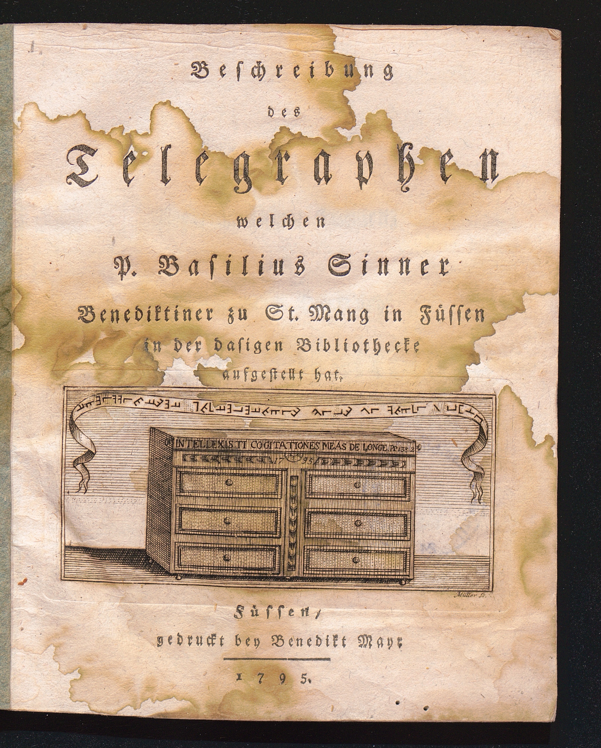 Beschreibung des Telegraphen : welchen P. Basilius Sinner Benediktiner zu St. Mang in Füssen in der dasigen Bibliothecke aufgestellt hat