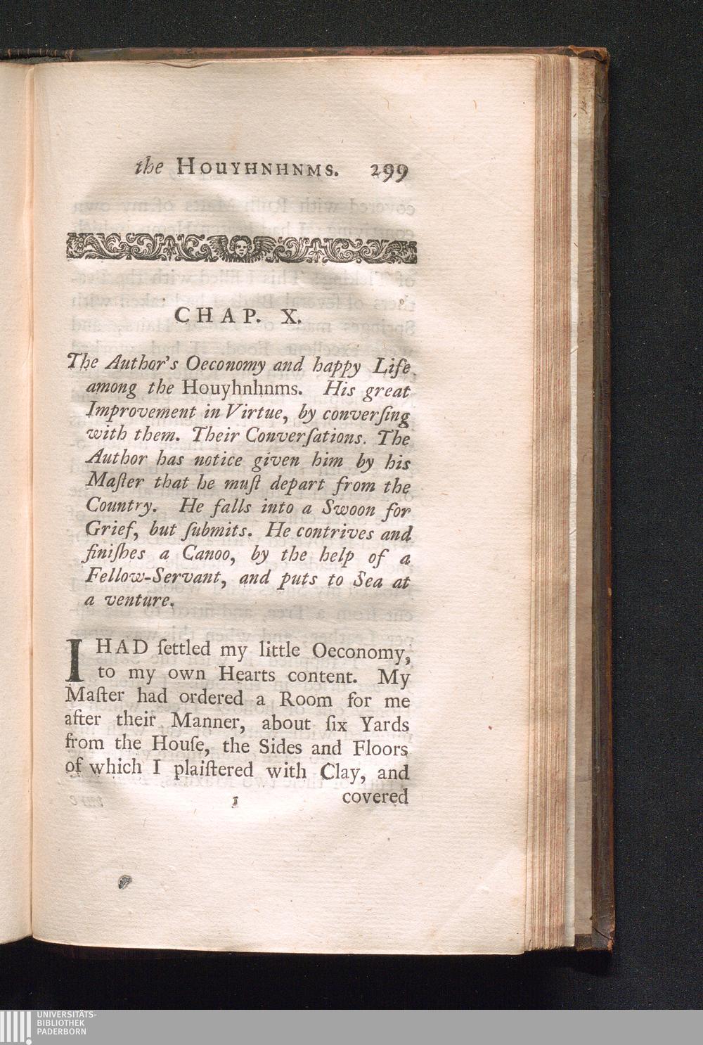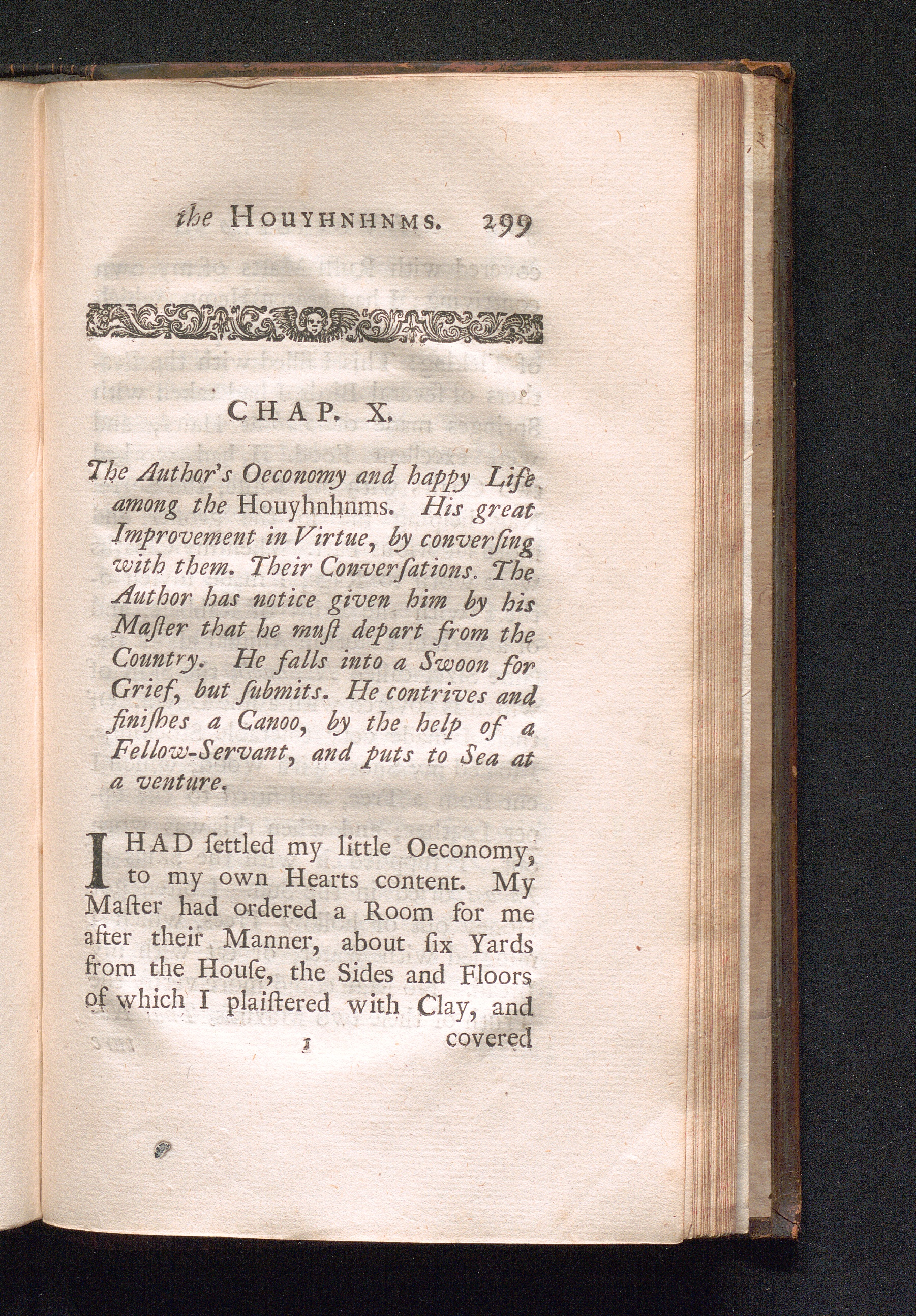 Chap. X. The Author's Oeconomy and happy Life among the Houyhnhnms. His great Improvement[...]