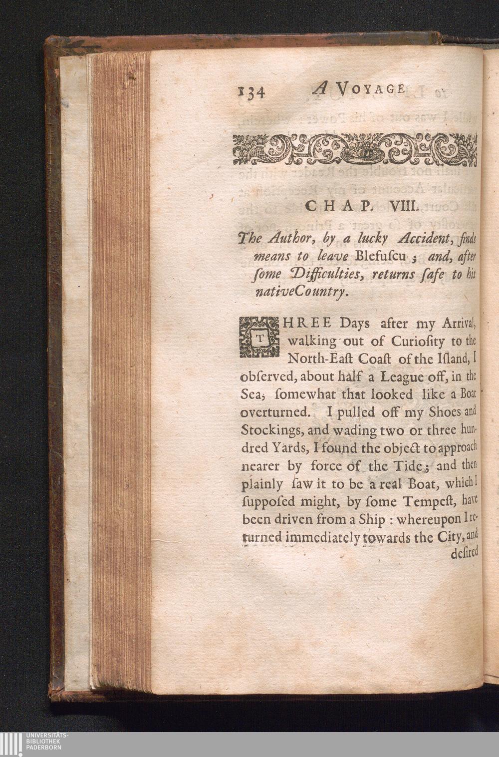 Chap. VIII. The Author by a lucky Accident, finds Means to leave Blefuscu, and, after[...]