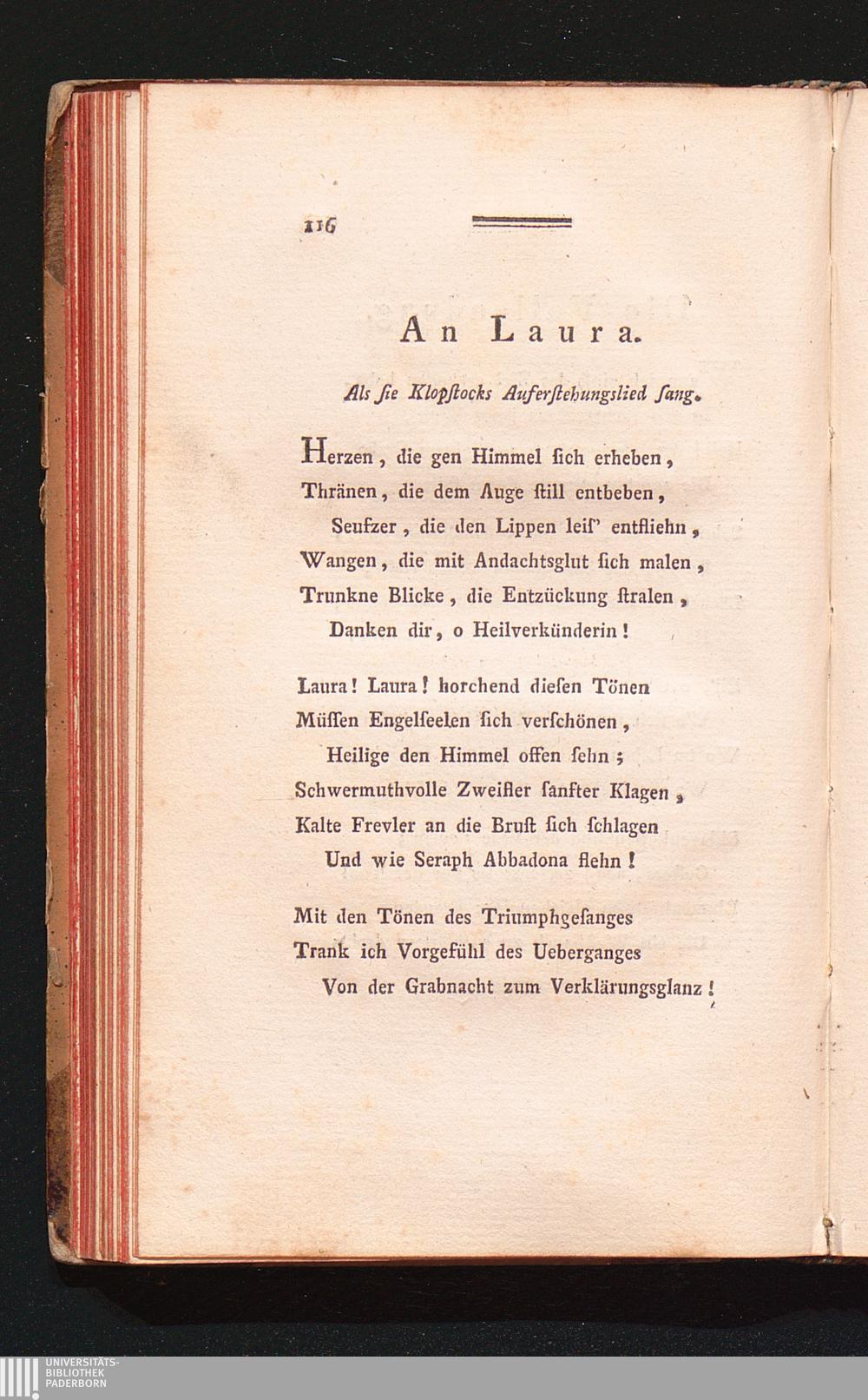 An Laura. Als sie Klopstocks Auferstehungslied sang.