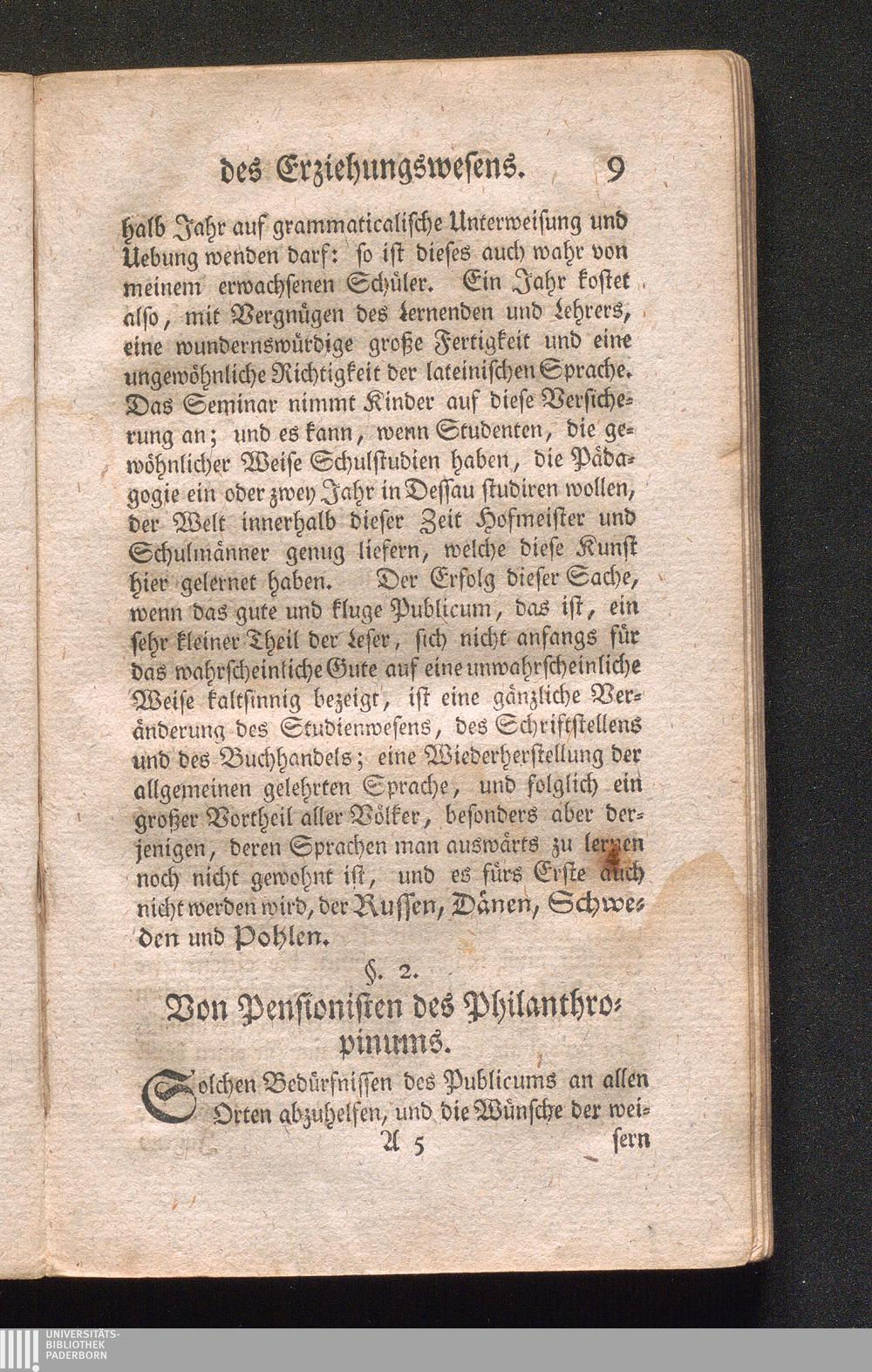 Das in Dessau errichtete Philanthropinum : Eine Schule der Menschenfreundschaft und guter Kenntnisse für Lernende und junge Lehrer, arme und reiche ; Ein Fidei-Commiß des Publicums zur Vervollkommnung des Erziehungswesens aller Orten nach dem Plane des Elementarwerks / empfohlen von Johann Bernnhard Basedow,