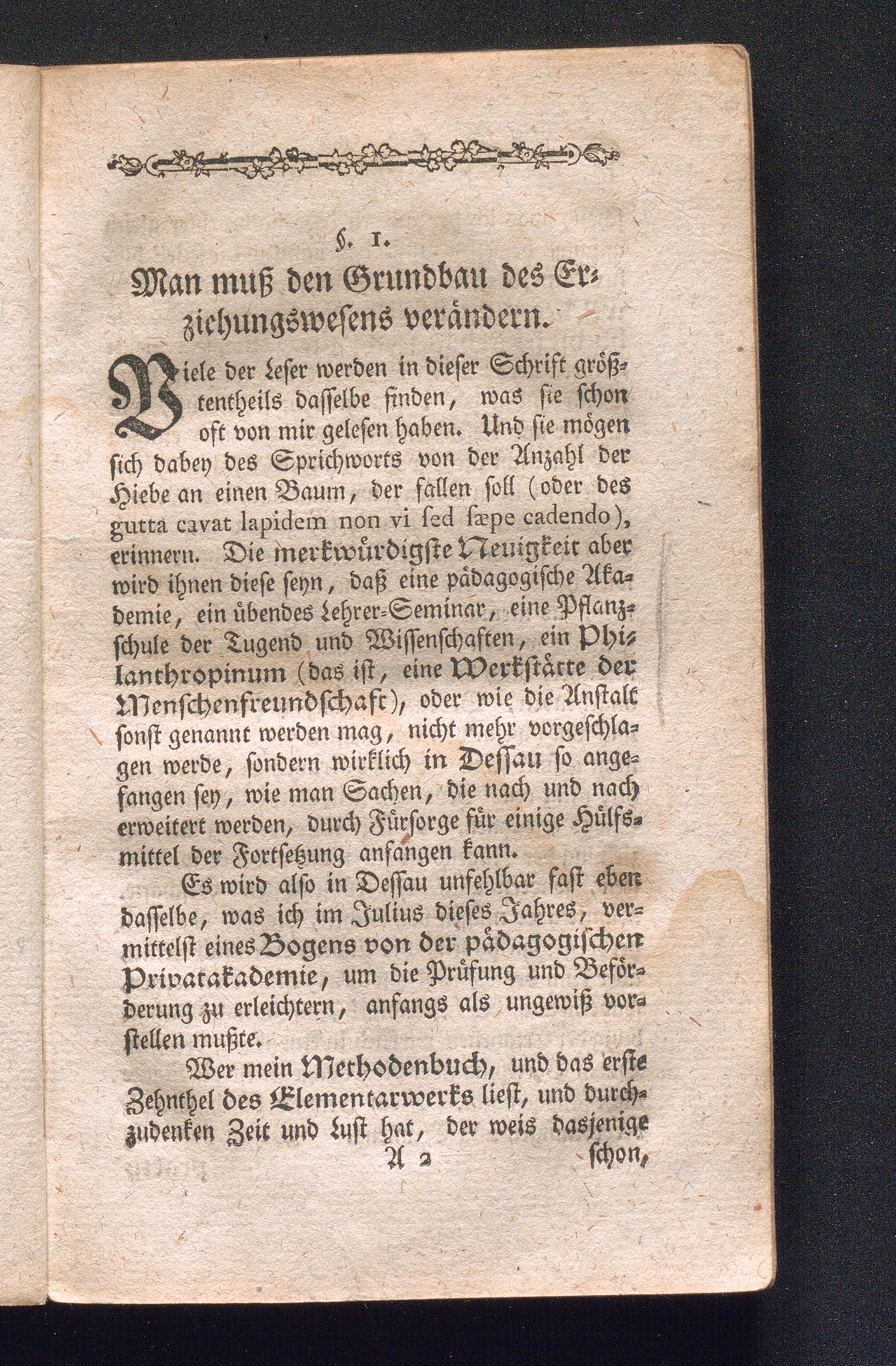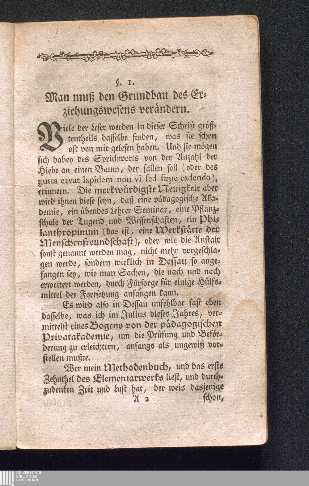 Das in Dessau errichtete Philanthropinum : Eine Schule der Menschenfreundschaft und guter Kenntnisse für Lernende und junge Lehrer, arme und reiche ; Ein Fidei-Commiß des Publicums zur Vervollkommnung des Erziehungswesens aller Orten nach dem Plane des Elementarwerks / empfohlen von Johann Bernnhard Basedow,