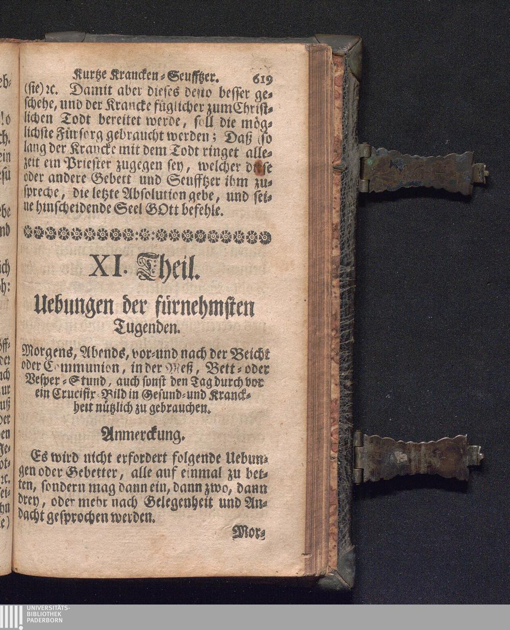 Bett- und Tugend-Buch/ Oder: Kurtze Tag- und Lebens-Regulen und Ubungen/ andächtig zu betten, fromm zu leben, und selig zu sterben : Allen so wohl Geist- als Weltlich-Ledig und Ehelichen Stands-Personen zum höchstem Nutzen auffgesetzet / Durch P. Alexandrum Wille, Der Societät Jesu Priestern