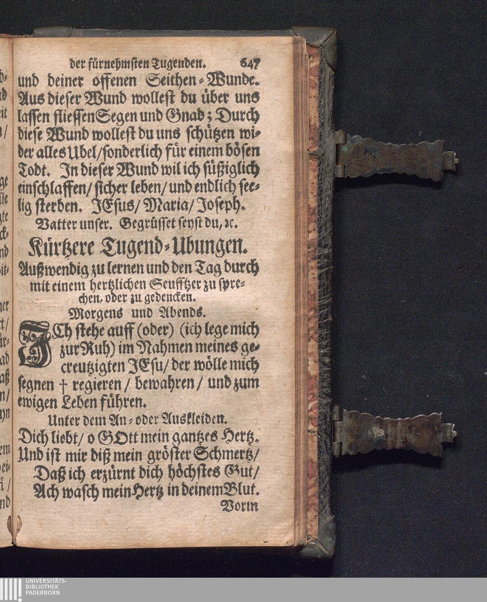 Bett- und Tugend-Buch/ Oder: Kurtze Tag- und Lebens-Regulen und Ubungen/ andächtig zu betten, fromm zu leben, und selig zu sterben : Allen so wohl Geist- als Weltlich-Ledig und Ehelichen Stands-Personen zum höchstem Nutzen auffgesetzet / Durch P. Alexandrum Wille, Der Societät Jesu Priestern