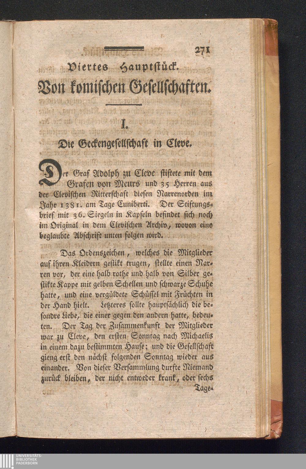 I. Die Geckengesellschaft in Cleve.