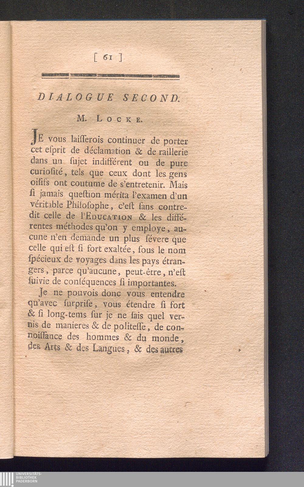 Dialogues Entre Lord Shaftesbury Et M. Locke : Sur quelques points essentiel à l'éducation de la jeunesse, pour servir de suite au Traité du dernier ; Sur L'education Des Enfans