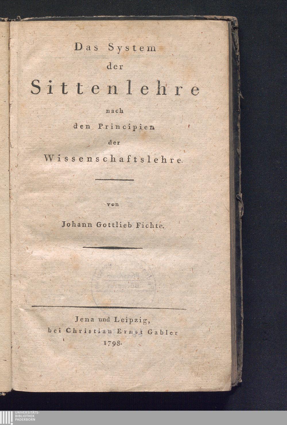 Das System der Sittenlehre nach den Principien der Wissenschaftslehre / von Johann Gottlieb Fichte