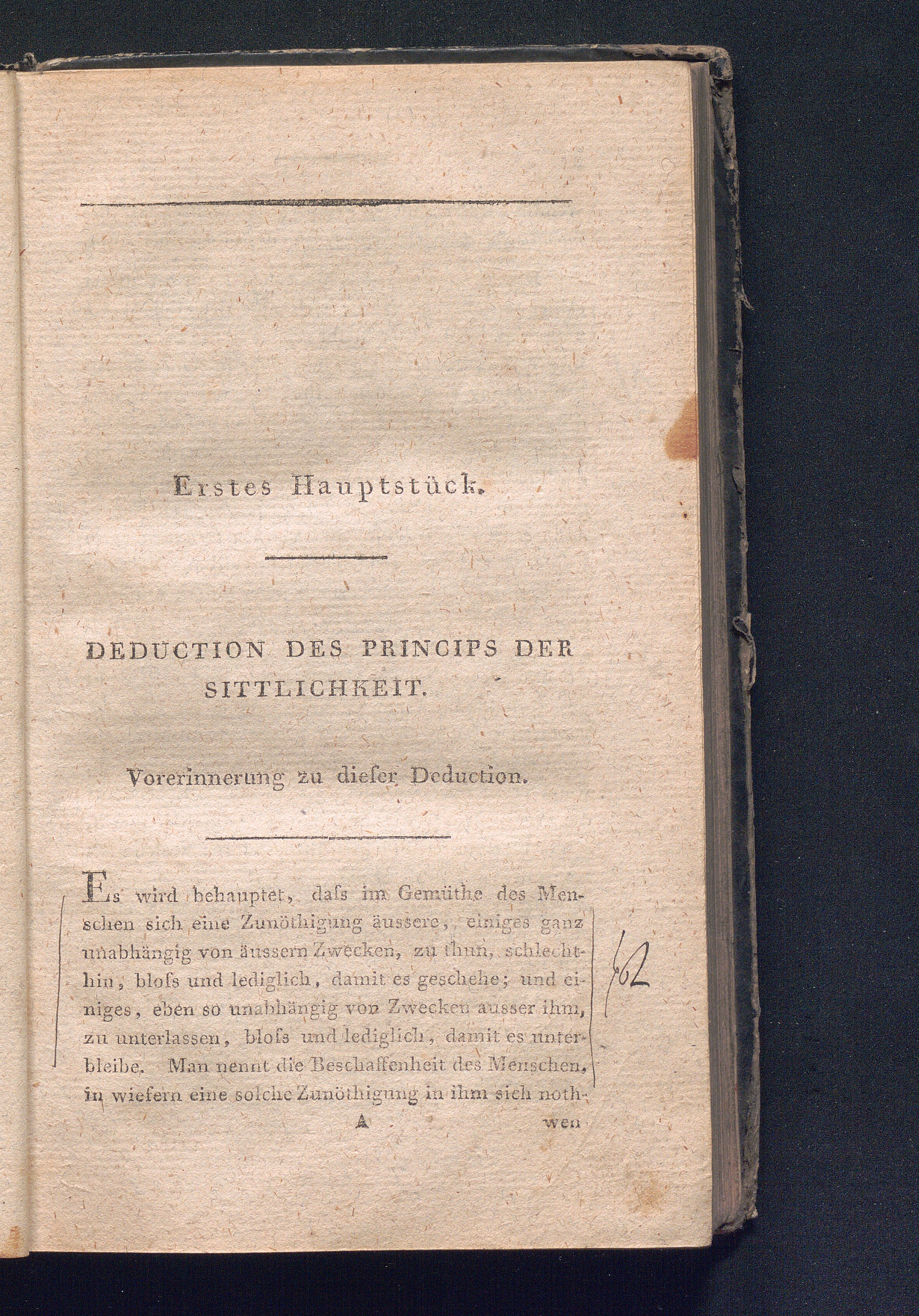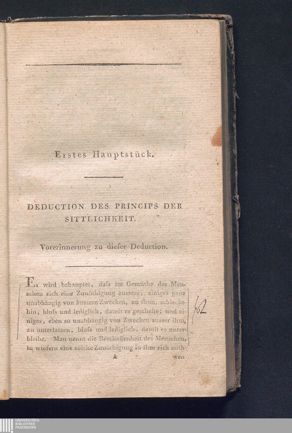 Erstes Hauptstück. Deduction des Princips der Sittlichkeit.