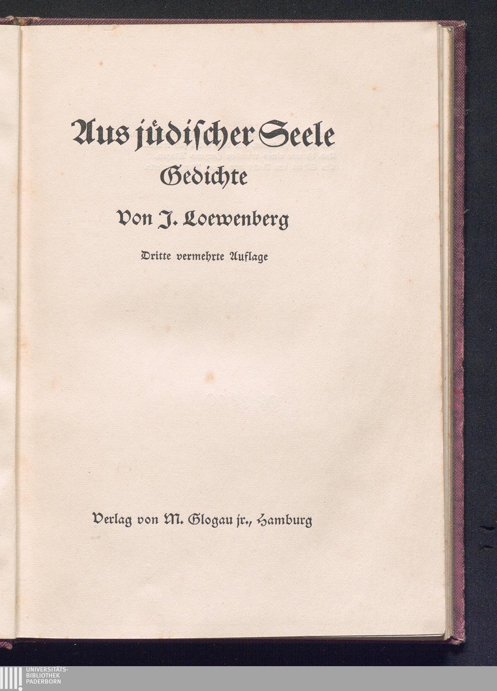 Aus jüdischer Seele : Gedichte / von J. Loewenberg