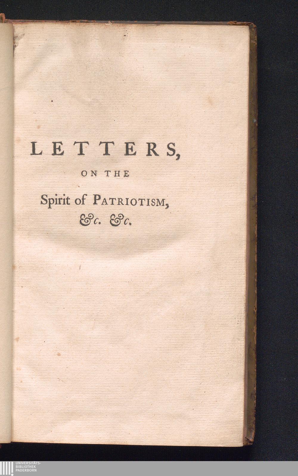 Letters,|| On The|| Spirit of Patriotism:|| On The|| Idea of a Patriot King:|| And||[...]