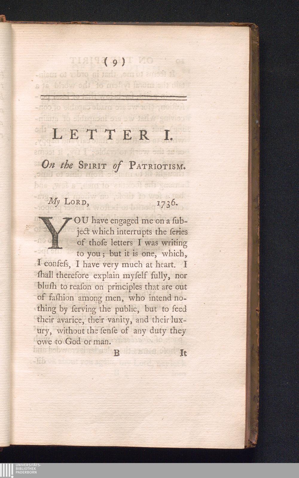 Letter I. On the Spirit of Patriotism.