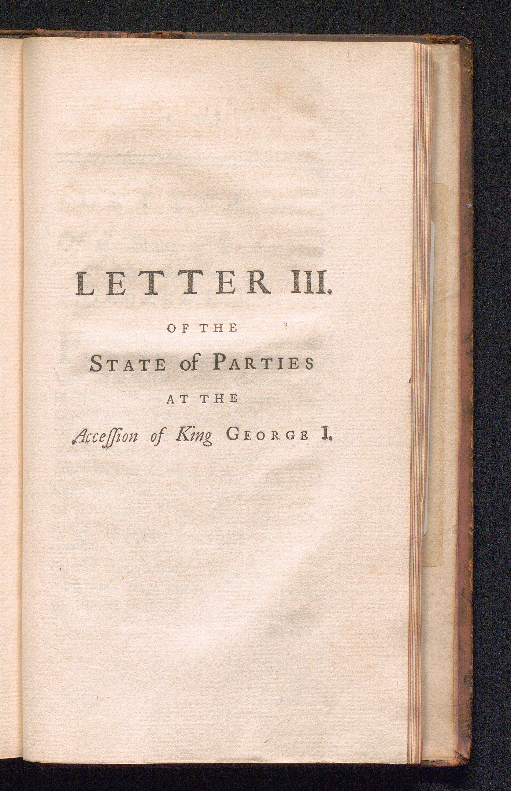 Letters,|| On The|| Spirit of Patriotism:|| On The|| Idea of a Patriot King:|| And|| On the State of Parties,|| At the Accession of|| King George the First / [Henry St. John Bolingbroke]