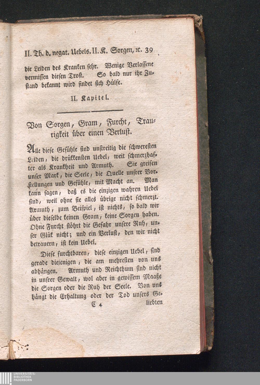 II. Kapitel. Von Sorgen, Gram, Furcht, [et]c.