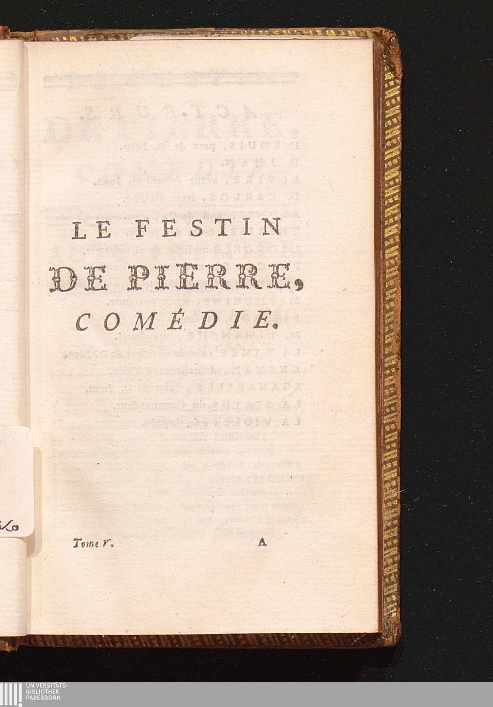 Tome Cinquieme (1783) Le Festin De Pierre, Comédie. La Comtesse d'Orgueil, Comédie