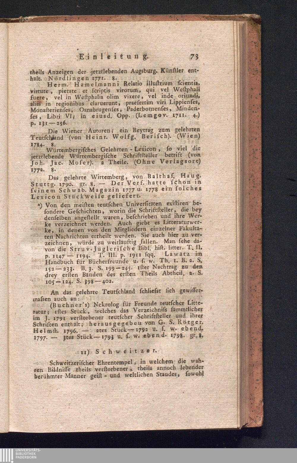 3) biographische Werke, oder solche, worin Nachrichten von Gelehrten und Schriftstellern,[...]