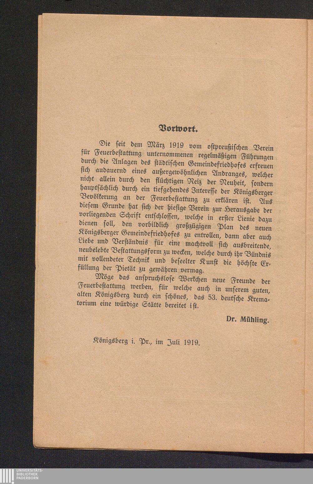 Der Königsberger Gemeindefriedhof und das Krematorium / von Dr. med. Mühling