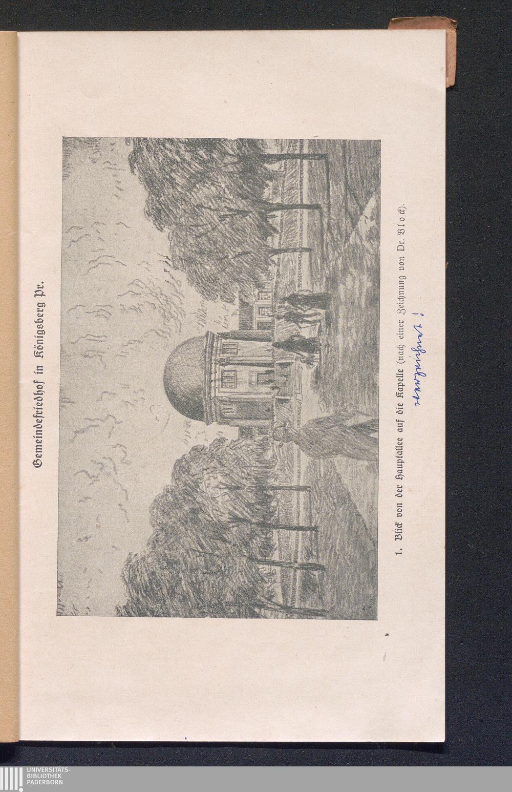 1. Blick von der Hauptallee auf die Kapelle (nach einer Zeichnung von Dr. Block)[...]