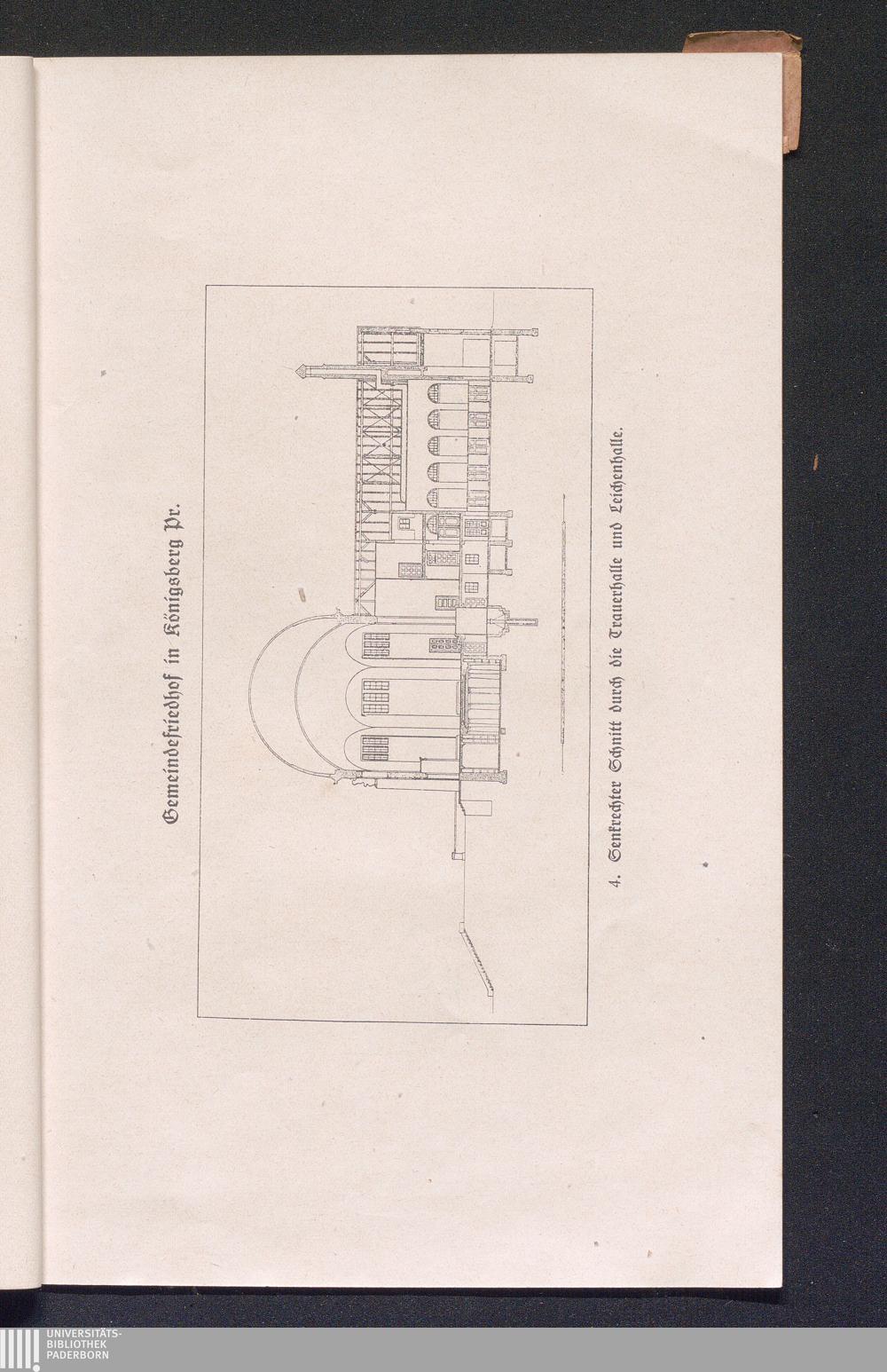 4. Senkrechter Schnitt durch die Trauerhalle und Leichenhalle.