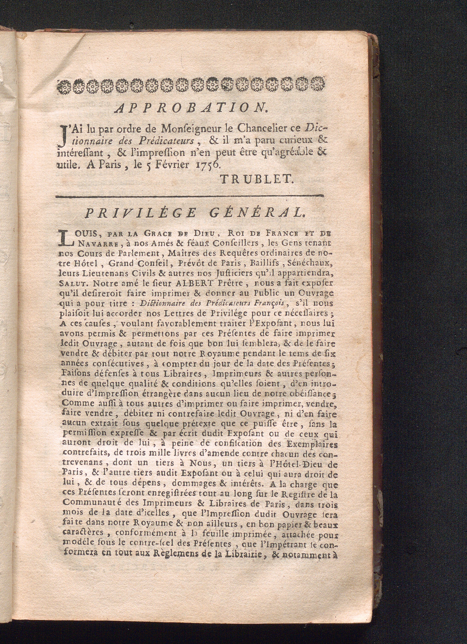 Dictionnaire Portatif Des Prédicateurs François : Dont Les Sermons, Prônes, Homélies, Panégyriques, Et Oraisons Funèbres Sont Imprimés ; Où l'on a marqué les meilleures Éditions qui en ont été faites, & les jugemens que les Scavans en ont portés; Avec de courtes analyses de tous les Traités de l'éloquence de la Chaire qui on paru en François / [Antoine Albert ; Jean Francois de La Court]