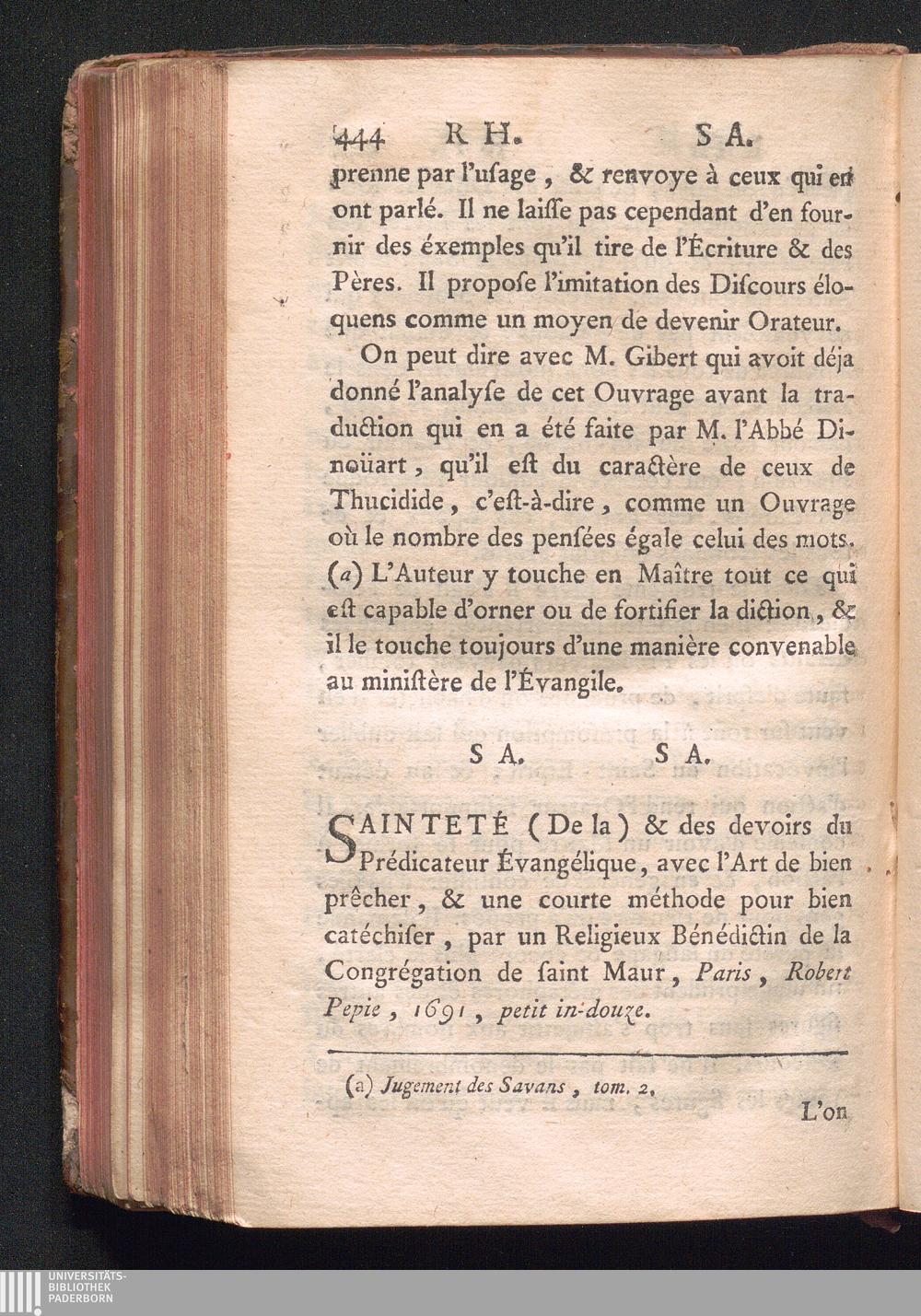 Dictionnaire Portatif Des Prédicateurs François : Dont Les Sermons, Prônes, Homélies, Panégyriques, Et Oraisons Funèbres Sont Imprimés ; Où l'on a marqué les meilleures Éditions qui en ont été faites, & les jugemens que les Scavans en ont portés; Avec de courtes analyses de tous les Traités de l'éloquence de la Chaire qui on paru en François / [Antoine Albert ; Jean Francois de La Court]