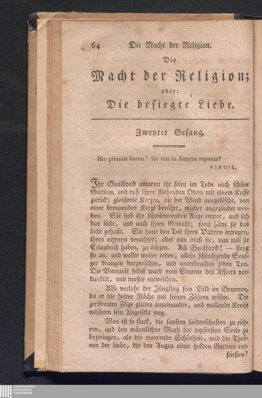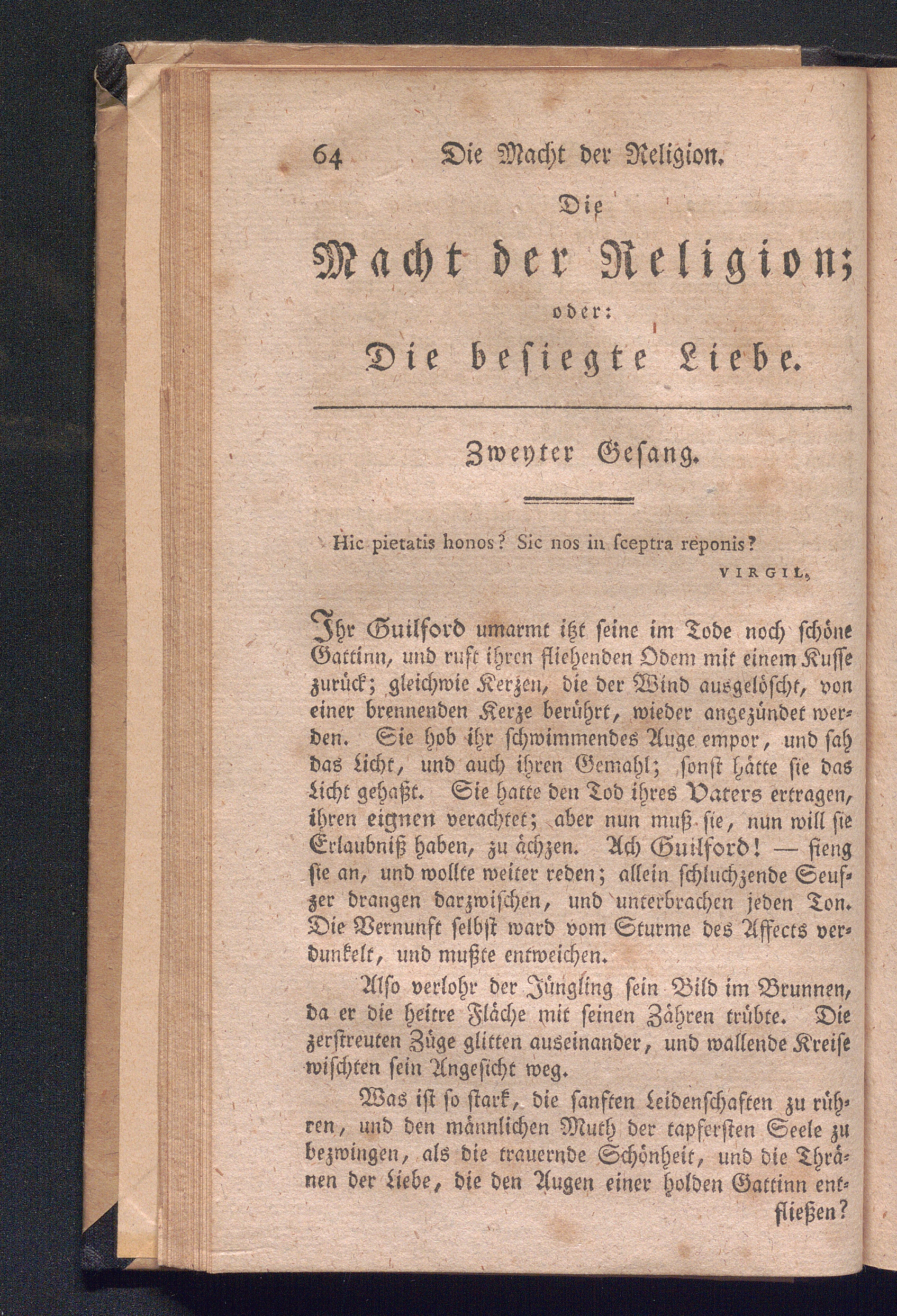 Die Macht der Religion; Oder: Die besiegte Liebe. Ein Gedicht. Jn zween Gesängen[...]