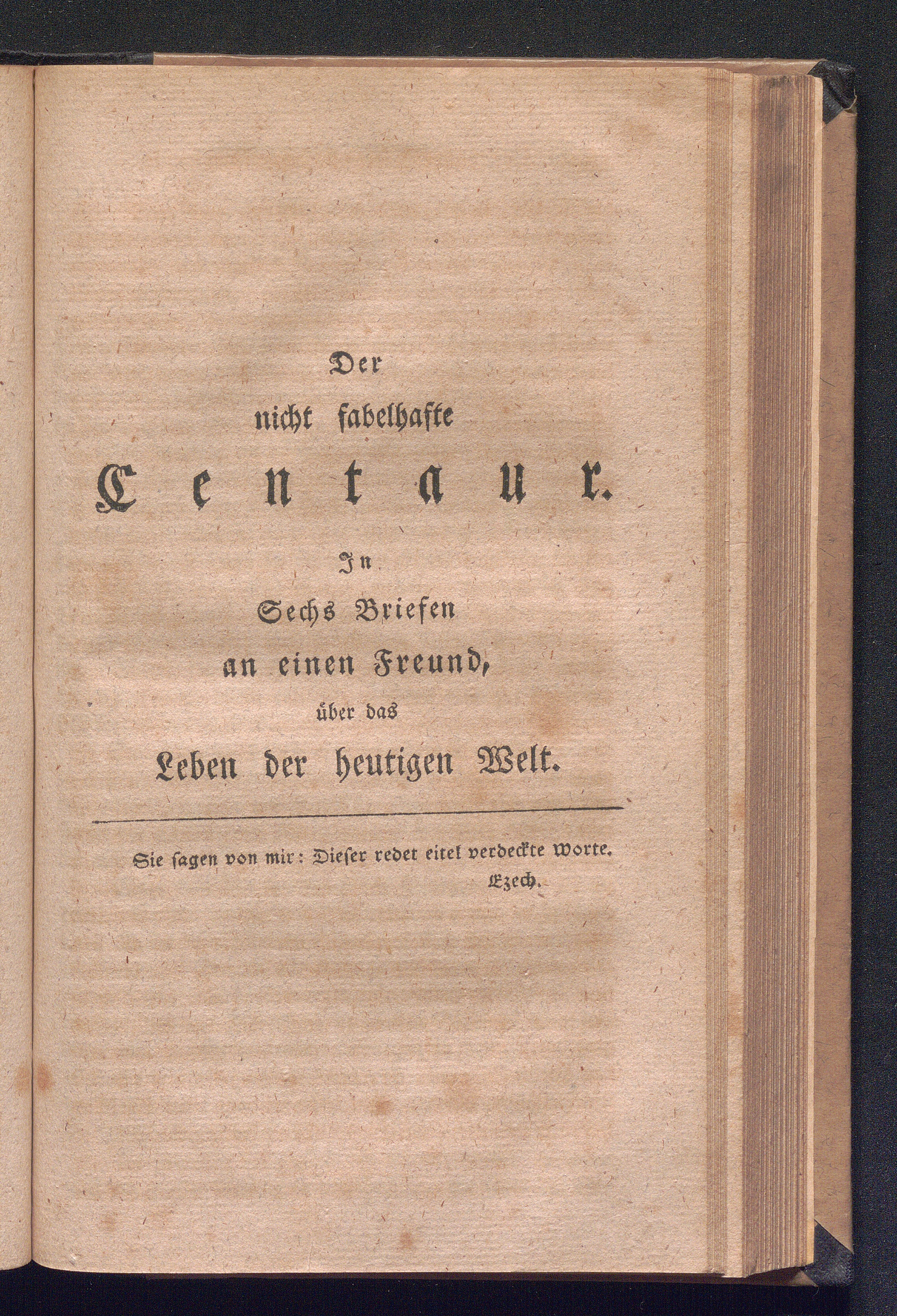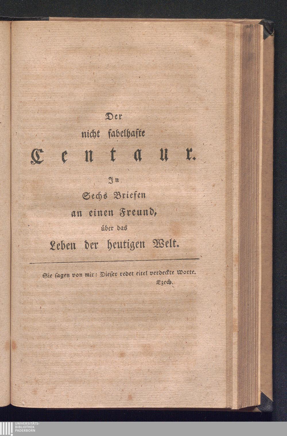 Der nicht fabelhafte Centaur. Jn Sechs Briefen an einen Freund, über das Leben der[...]