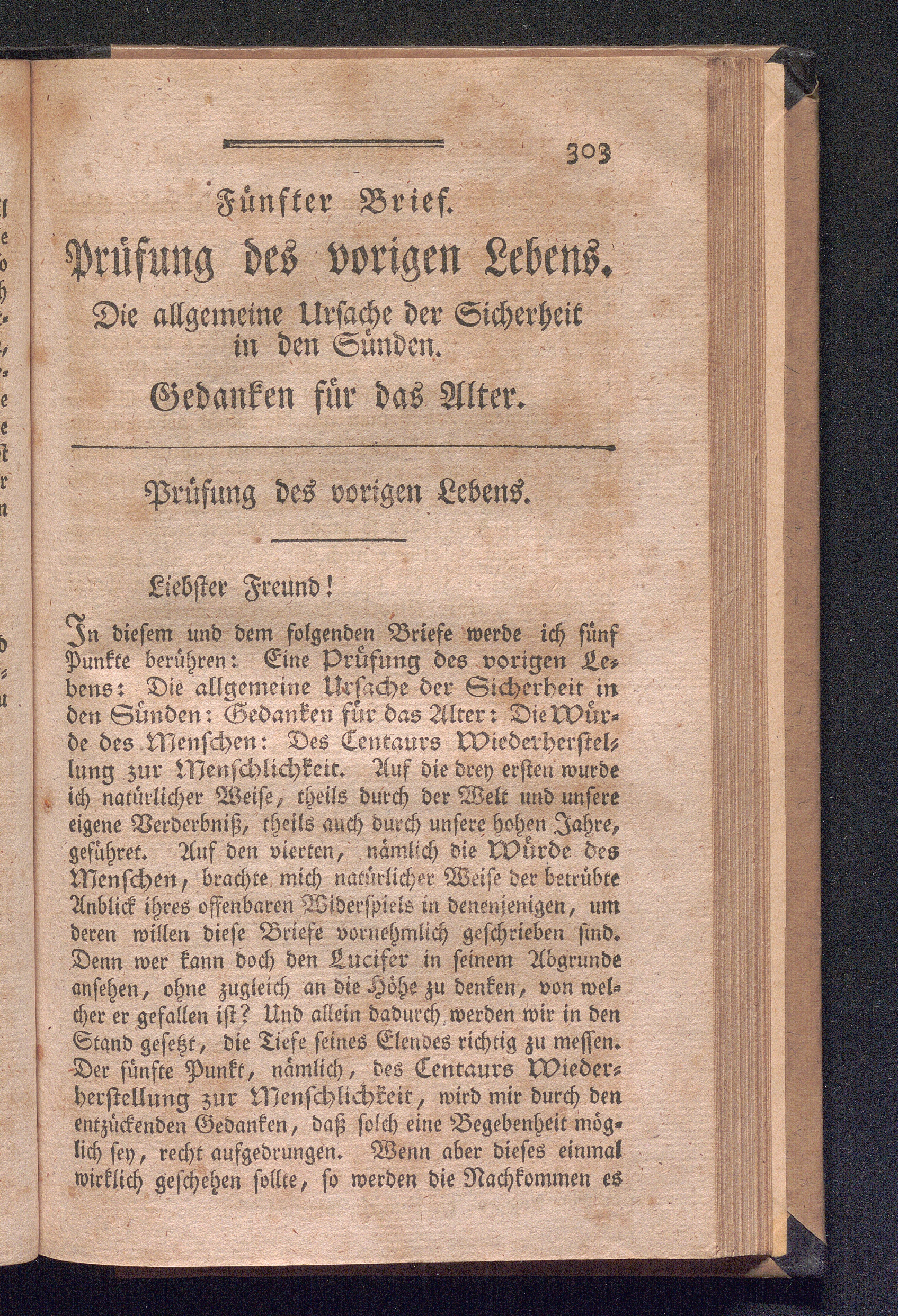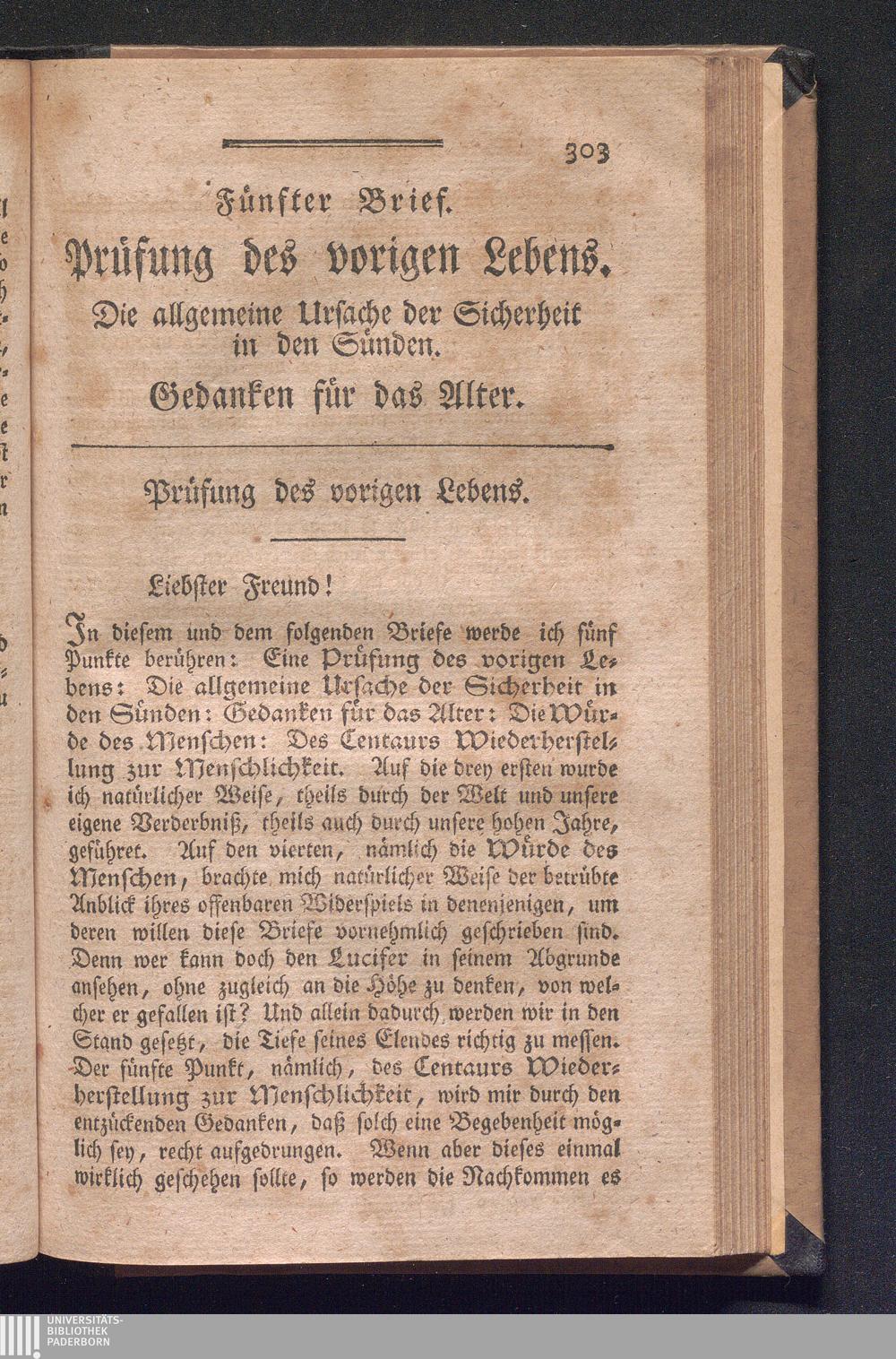 Fünfter Brief. Prüfung des vorigen Lebens. Die allgemeine Ursache der Sicherheit[...]