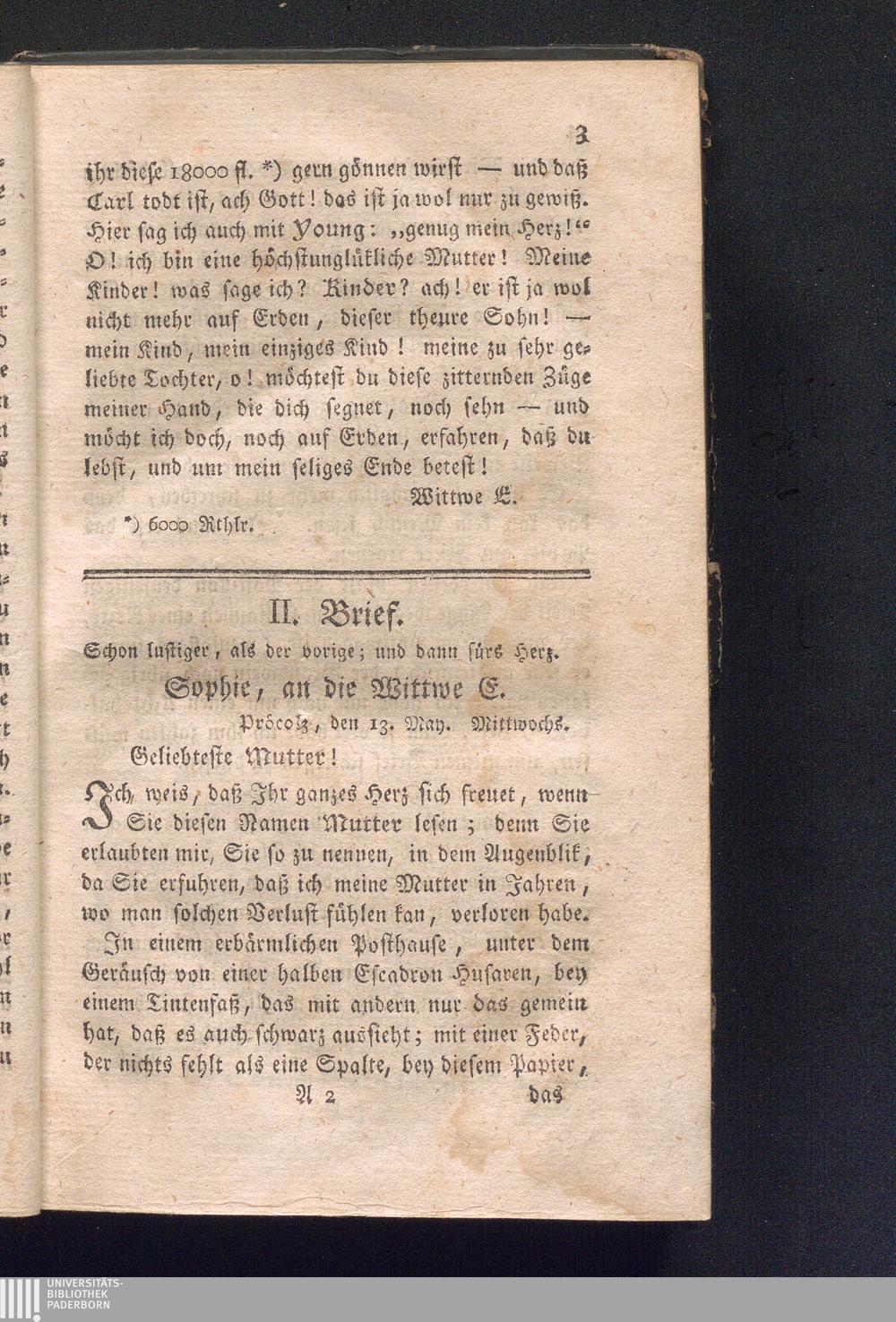 II. Brief. Schon lustiger als der vorige; und dann fürs Herz.
