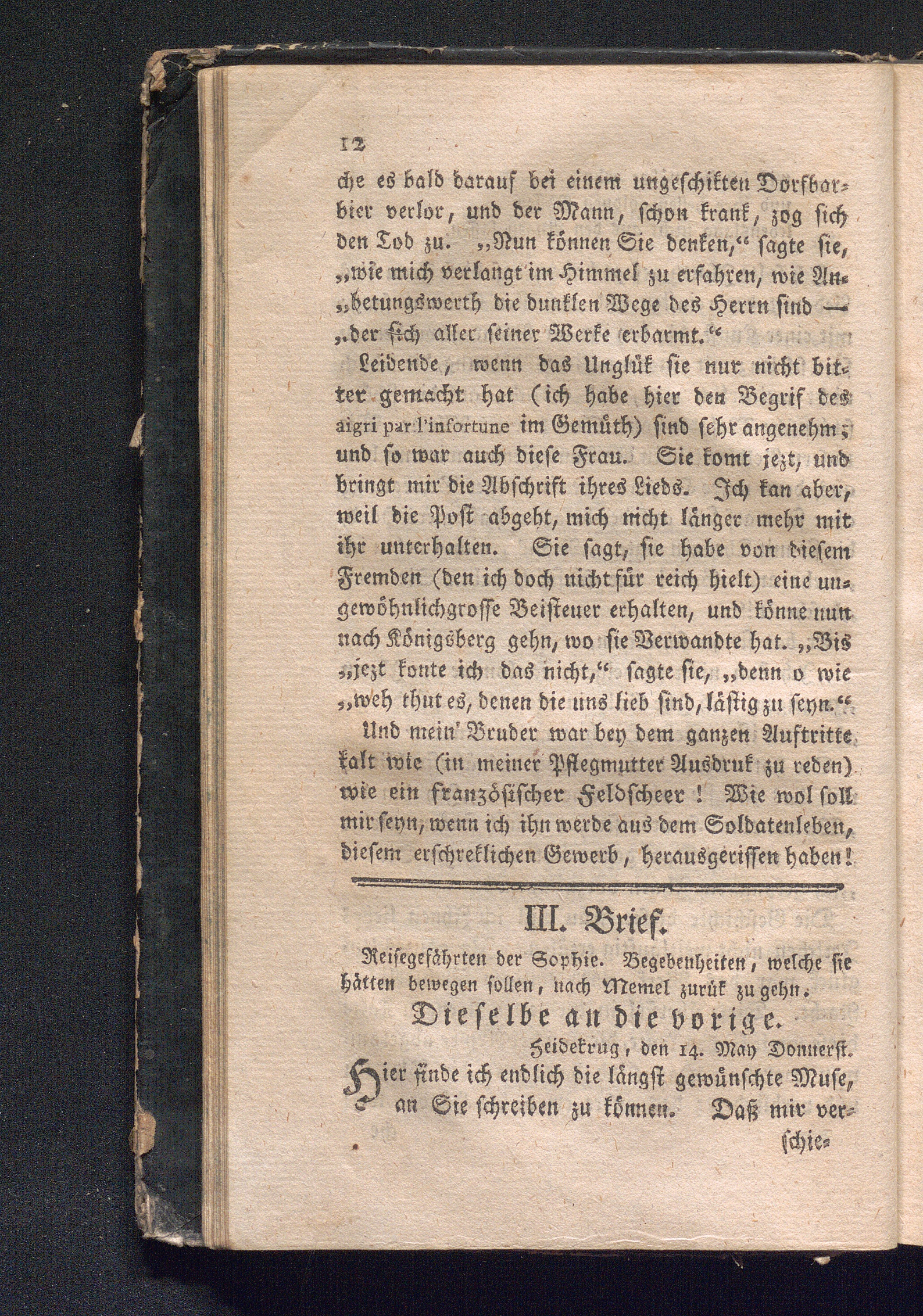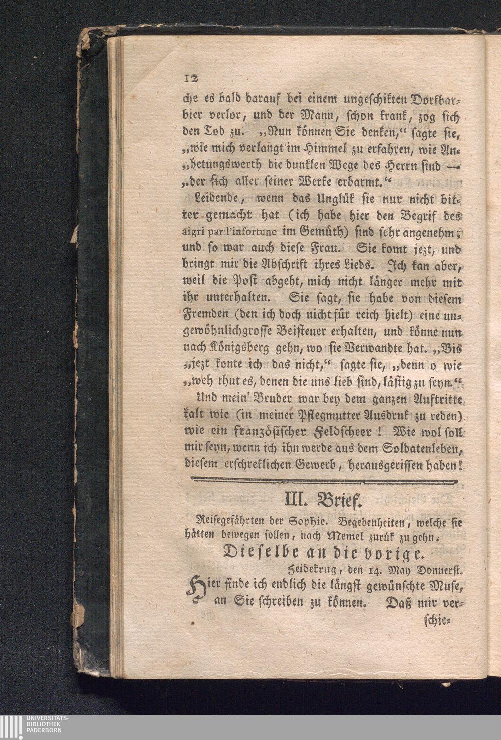 III. Brief. Reisegefährten der Sophie. Begebenheiten, welche sie hätten bewegen sollen,[...]